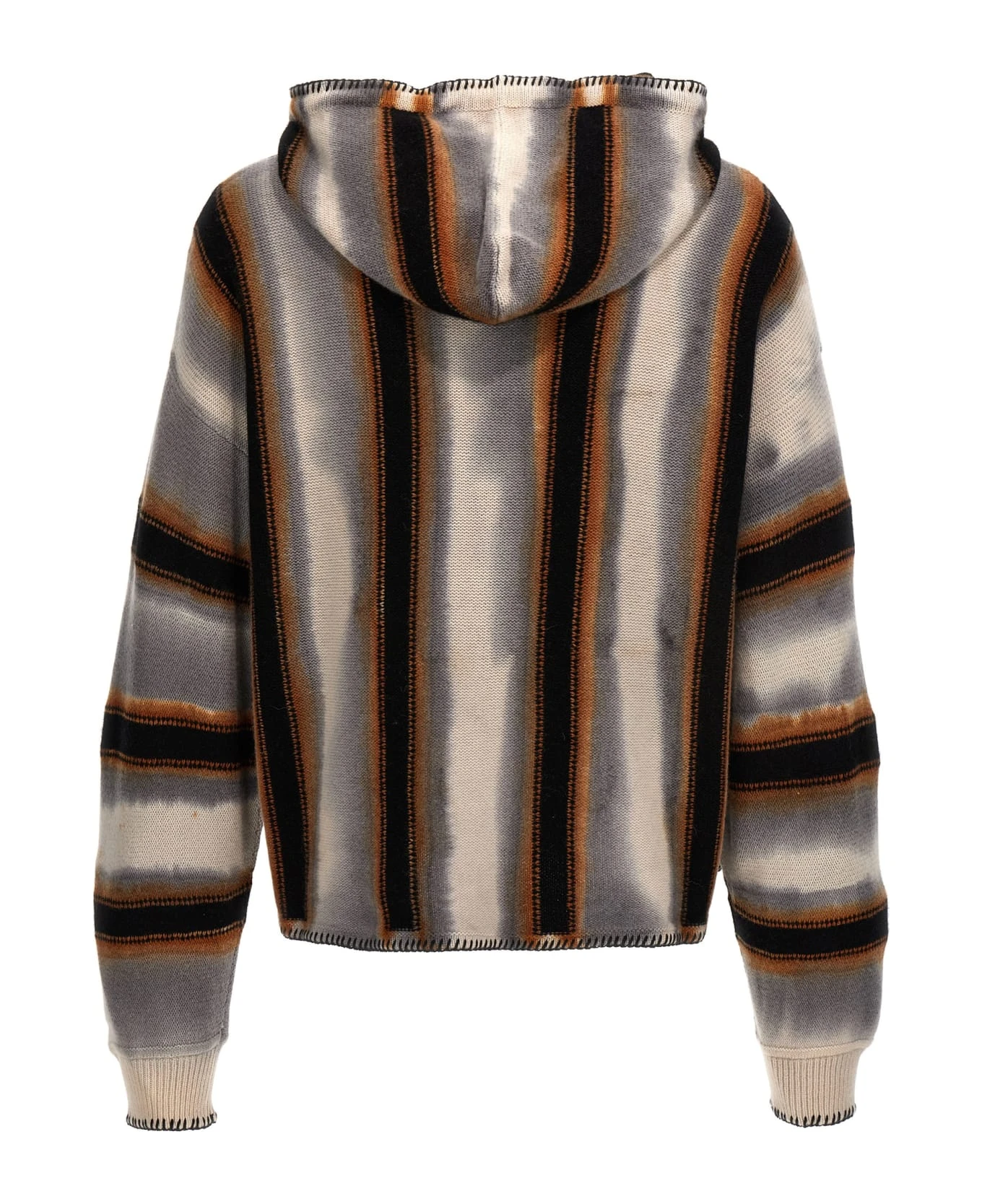 ‘Baja Stripe’ cashmere and striped wool sweater, with kangaroo pocket, and long cuffed sleeves.