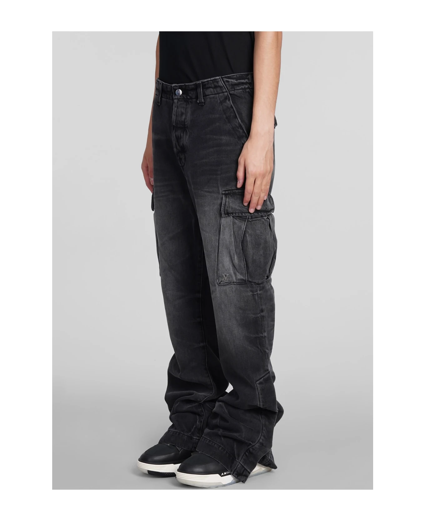 Jeans in grey cotton, button and zip closure, belt loops, five pockets, cargo pockets, faded effect, buttons detail, cargo style, straight fit, 100% cotton, Made in Usa