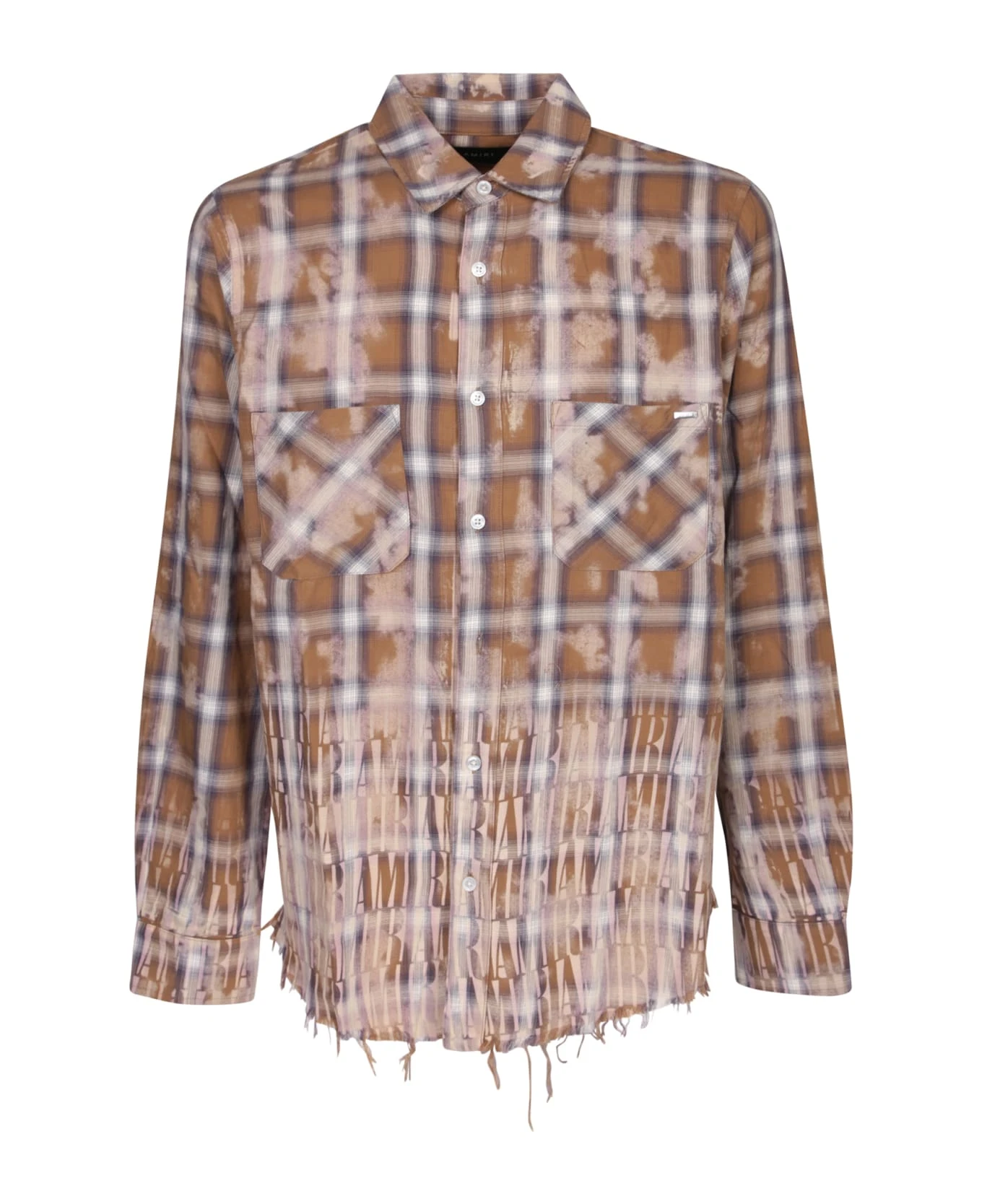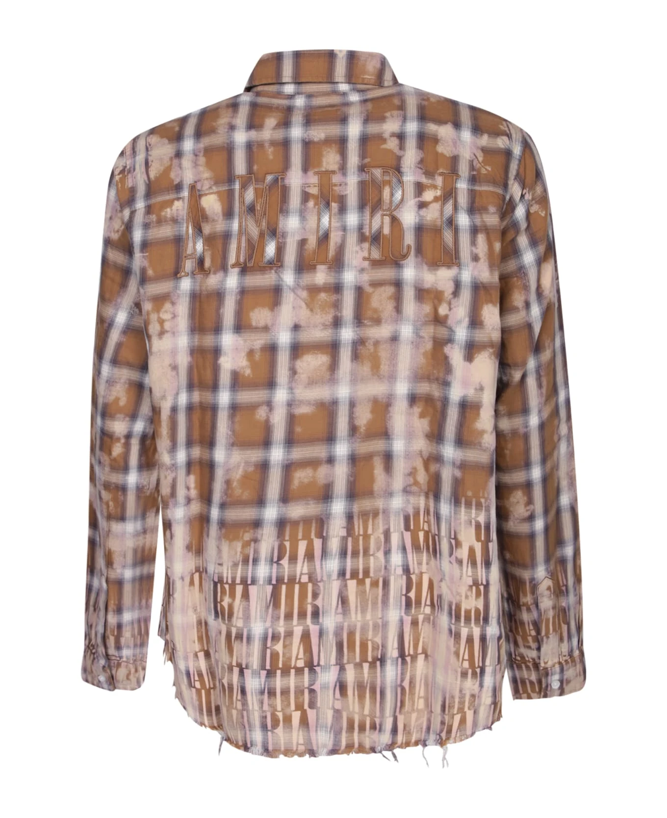 Bleached effect. Classic collar. Long sleeves. Front button fastening. Embroidered logo to the rear. Plaid check pattern. Two chest patch pockets. Curved raw-cut hem. Color: beige