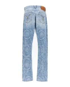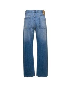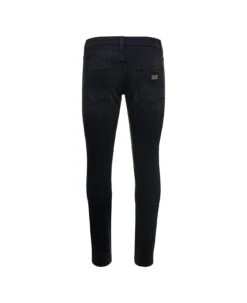 ‘Stack’ stretch cotton denim jeans with all-over used-effect details, button closure, five pockets, leather logo tag, skinny leg.