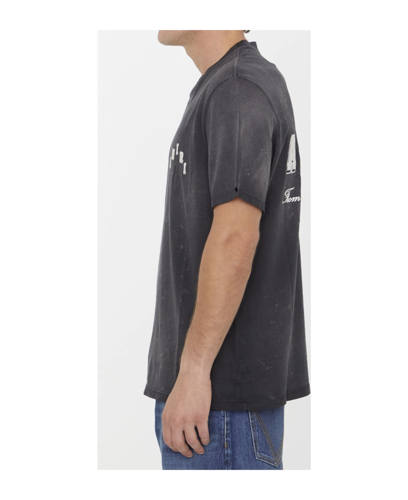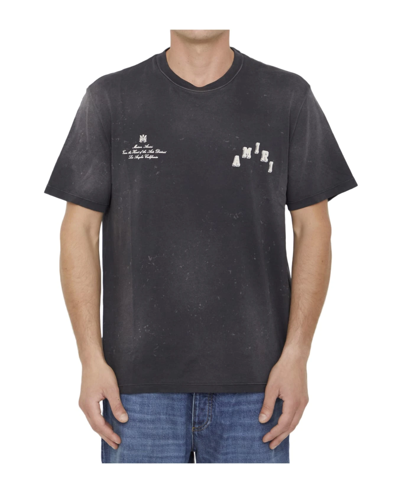 Short-sleeved crewneck Vintage Collegiate t-shirt in vintage black cotton with embossed motif on the front and on the back. Regular fit.