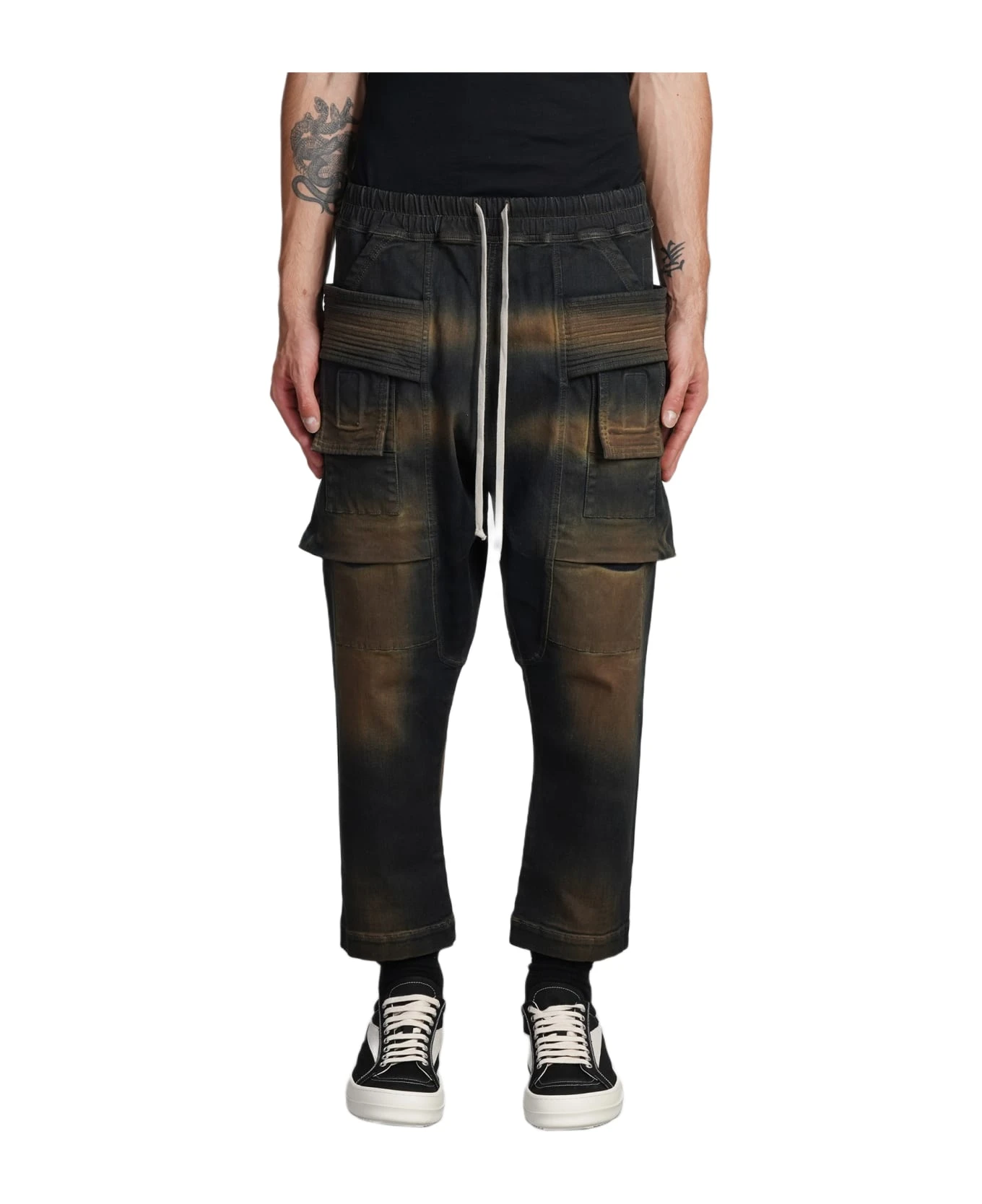 Creatch cargo crop Pants in black cotton, elastic waist, Drawstring laces, cargo pockets, four pockets, 100% cotton, tie dye print, Made in Italy, Model is 1. 83 and wears size S