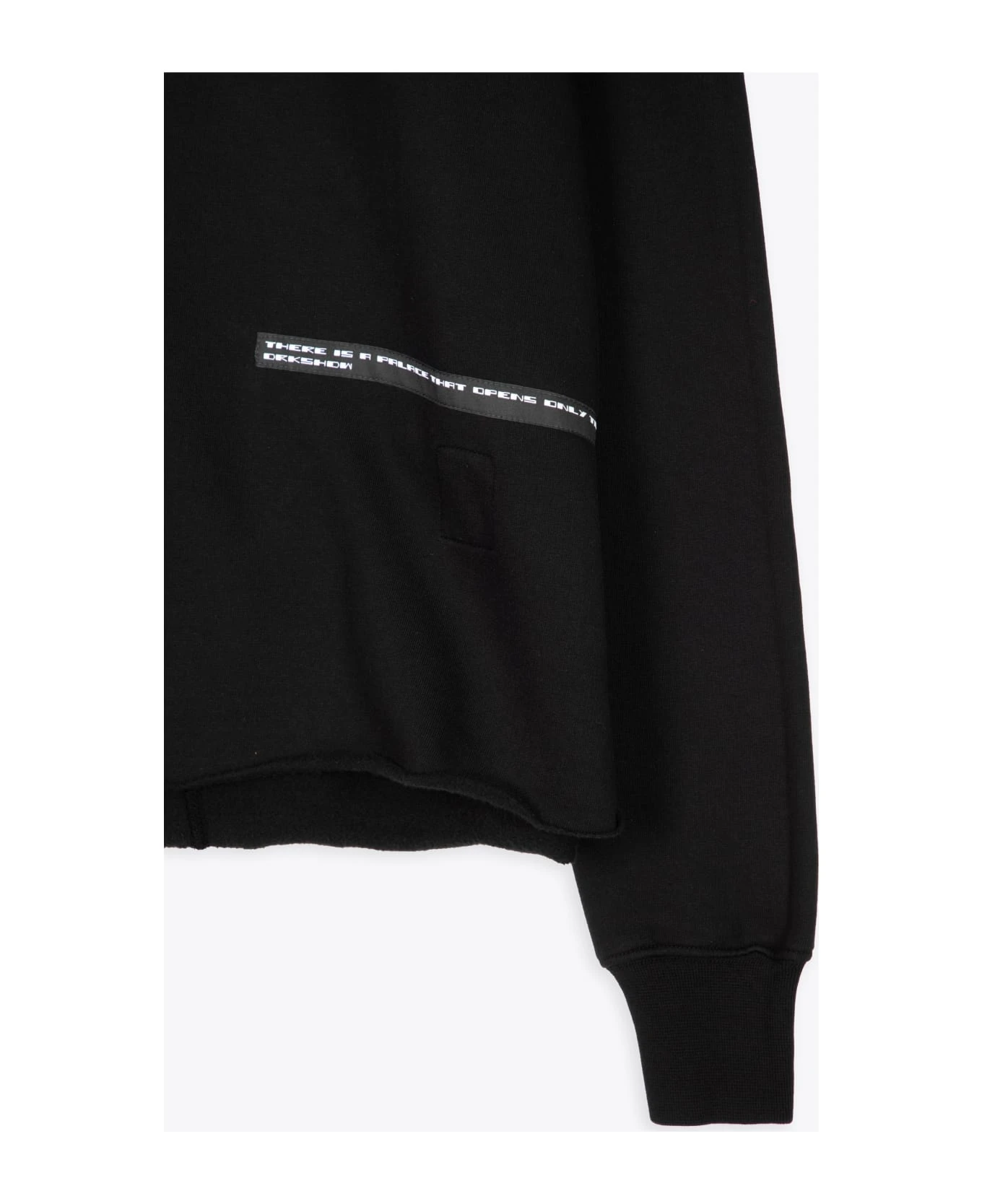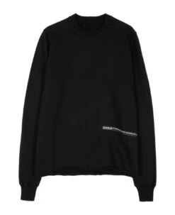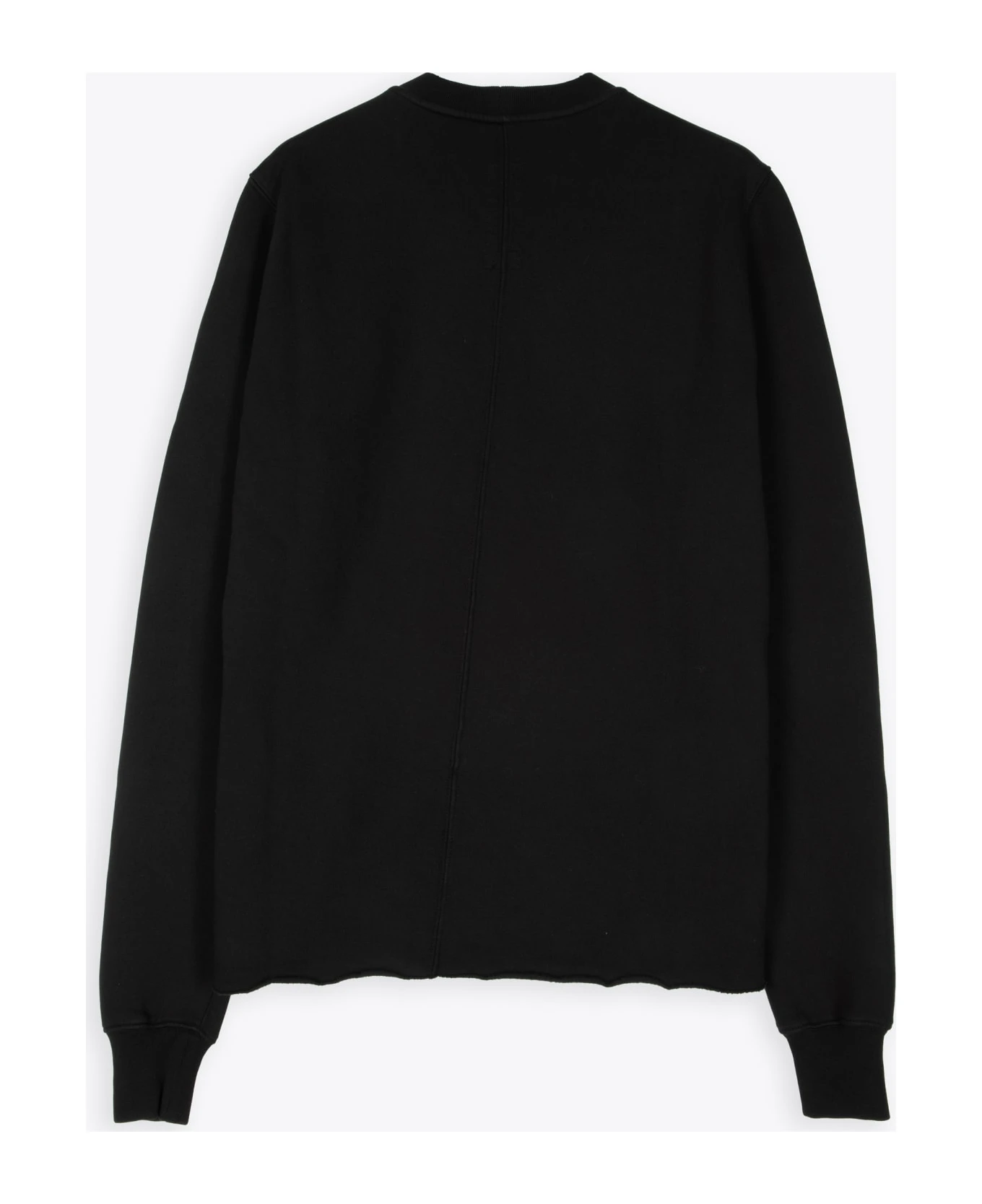 Black cotton sweatshirt with ribbed crewneck and cuffs. Patch detail with text. Raw bottom hem. Relaxed fit. Composition: 100% cotton. Made in Italy.