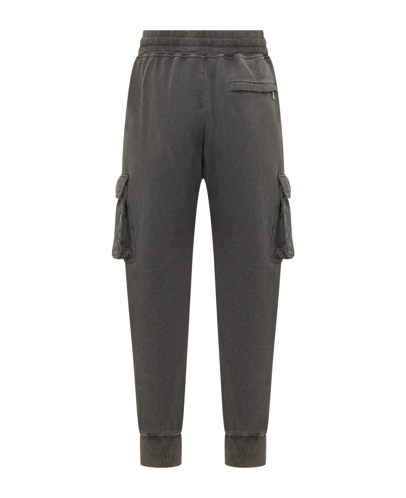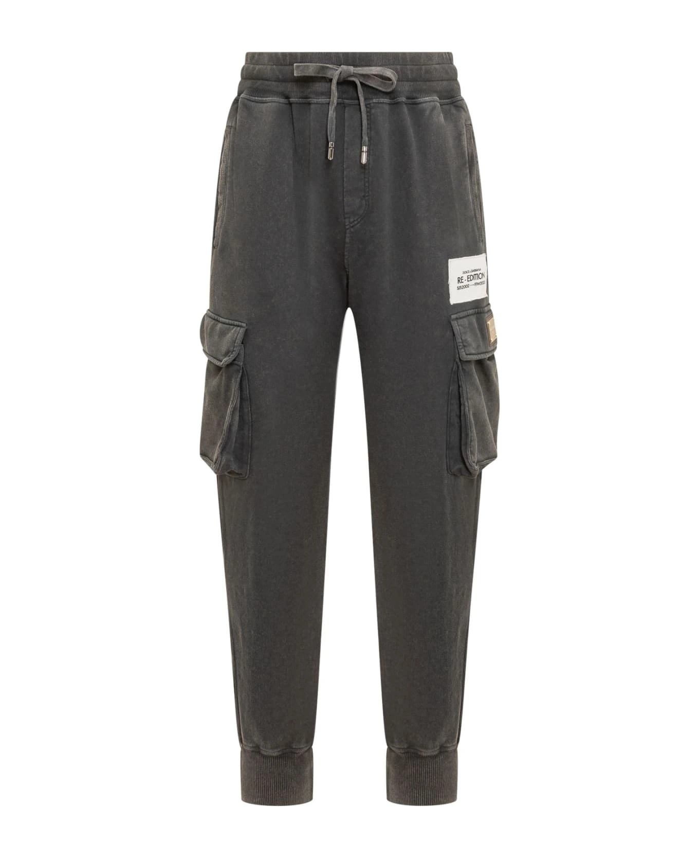 Grey long pants. Elastic and drawstring waist. Side pockets. Logo on the side. Elastic at the ankles.