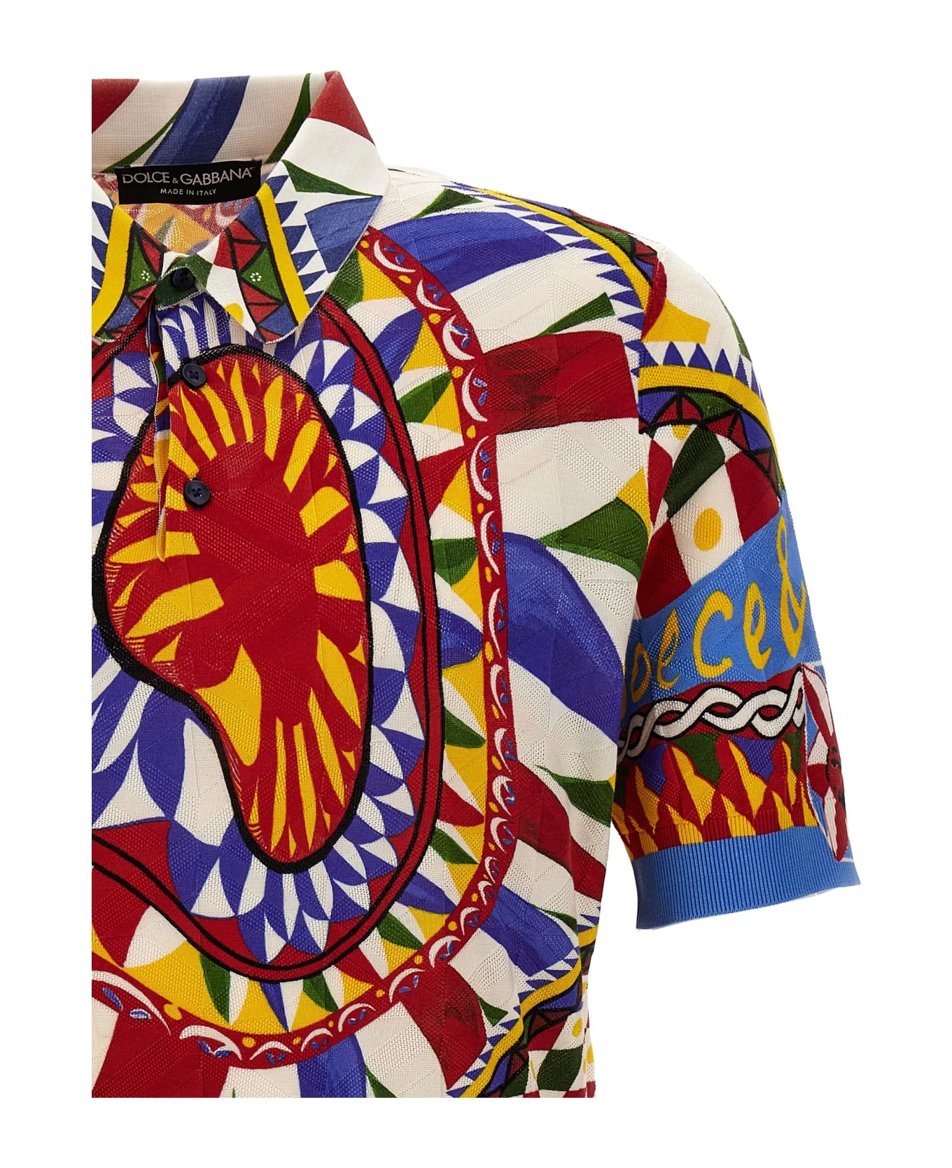 ‘Carretto’ silk polo shirt with trompe l’oeil jacquard pattern, all-over print and buttons around the neck.