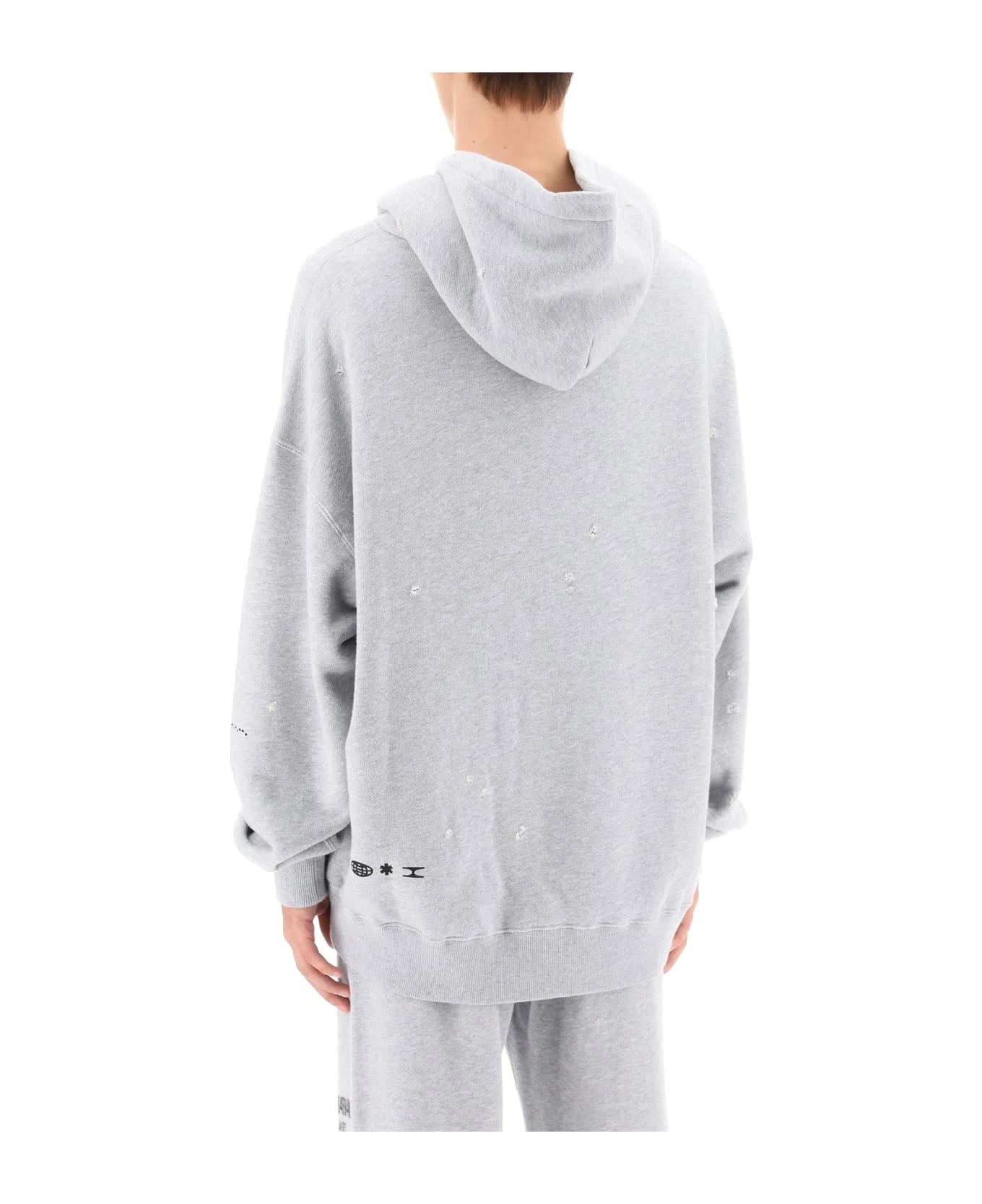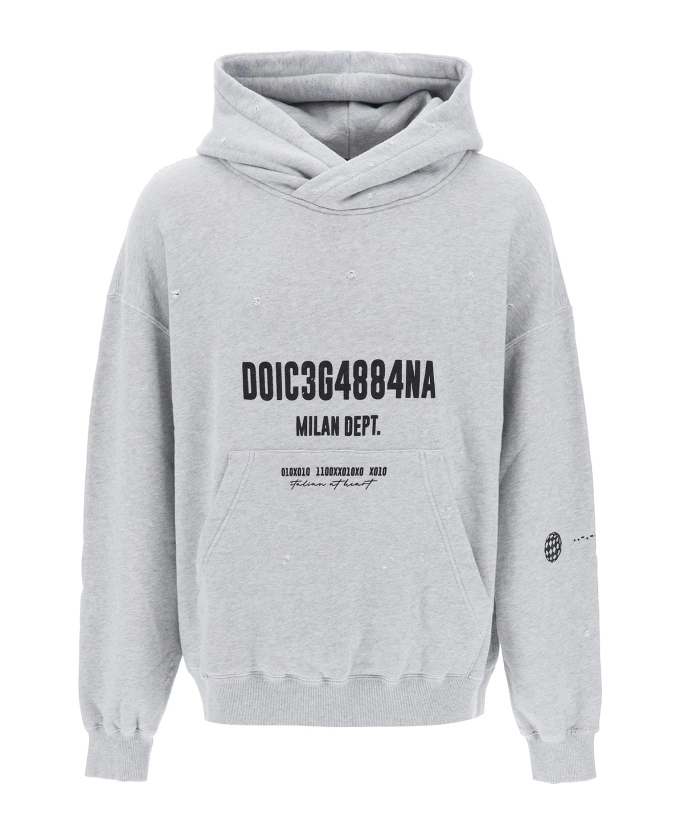 Dolce&Gabbana hoodie crafted in distressed-effect cotton french terry with prints at front, back and on the sleeve. It features front kangaroo pocket and ribbed trims. Oversized fit with dropped shoulders. The model is 187 cm tall and wears size L.