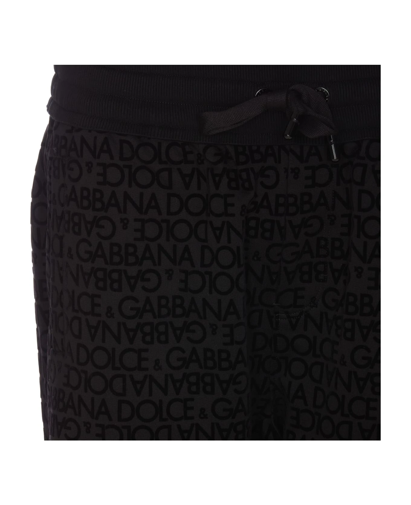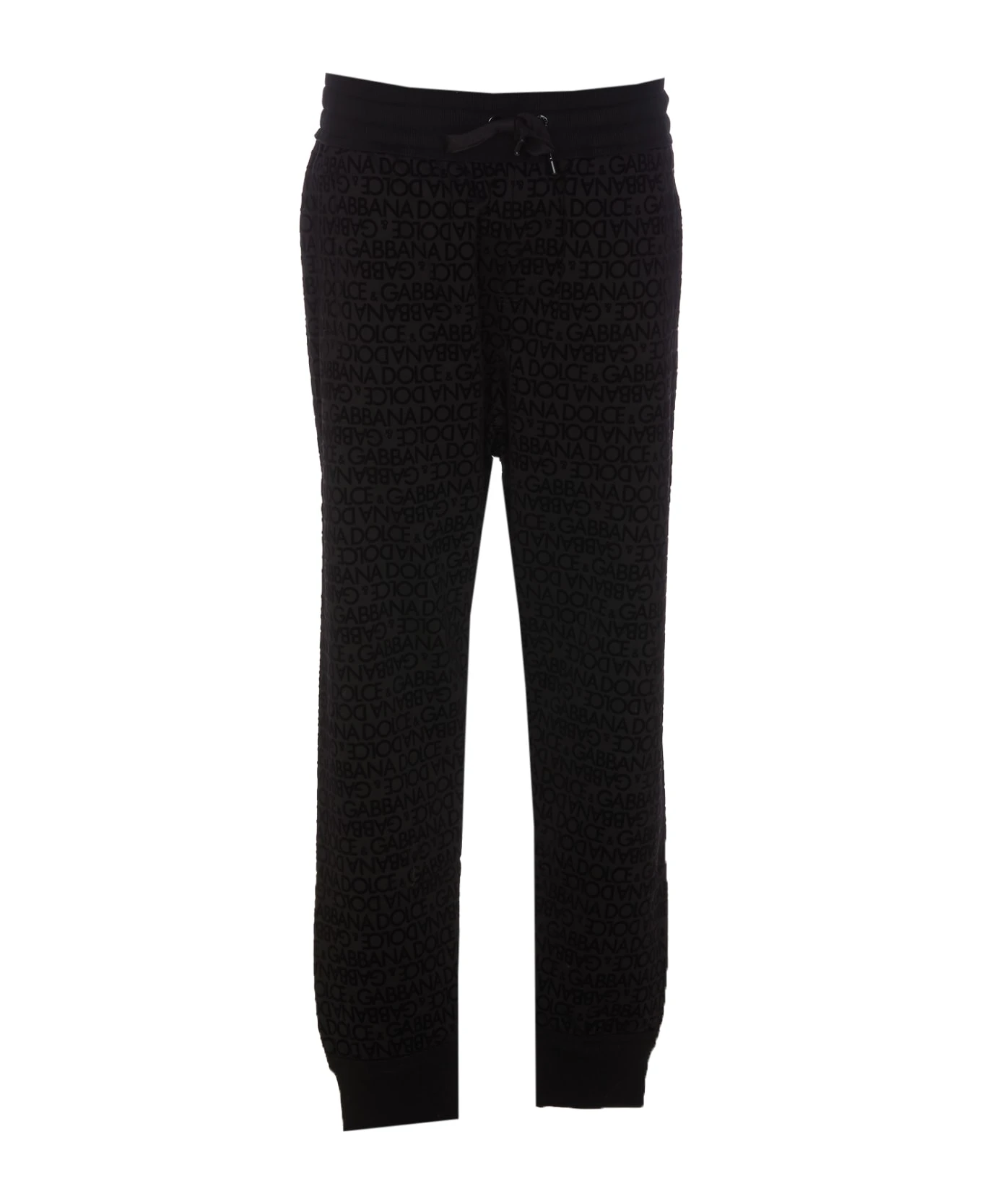 Dolce&gabbana black pants, coulisse closure, lateral pockets, all over print tone on tone logo, elasticized cuffs at bottom, elasticized on waist