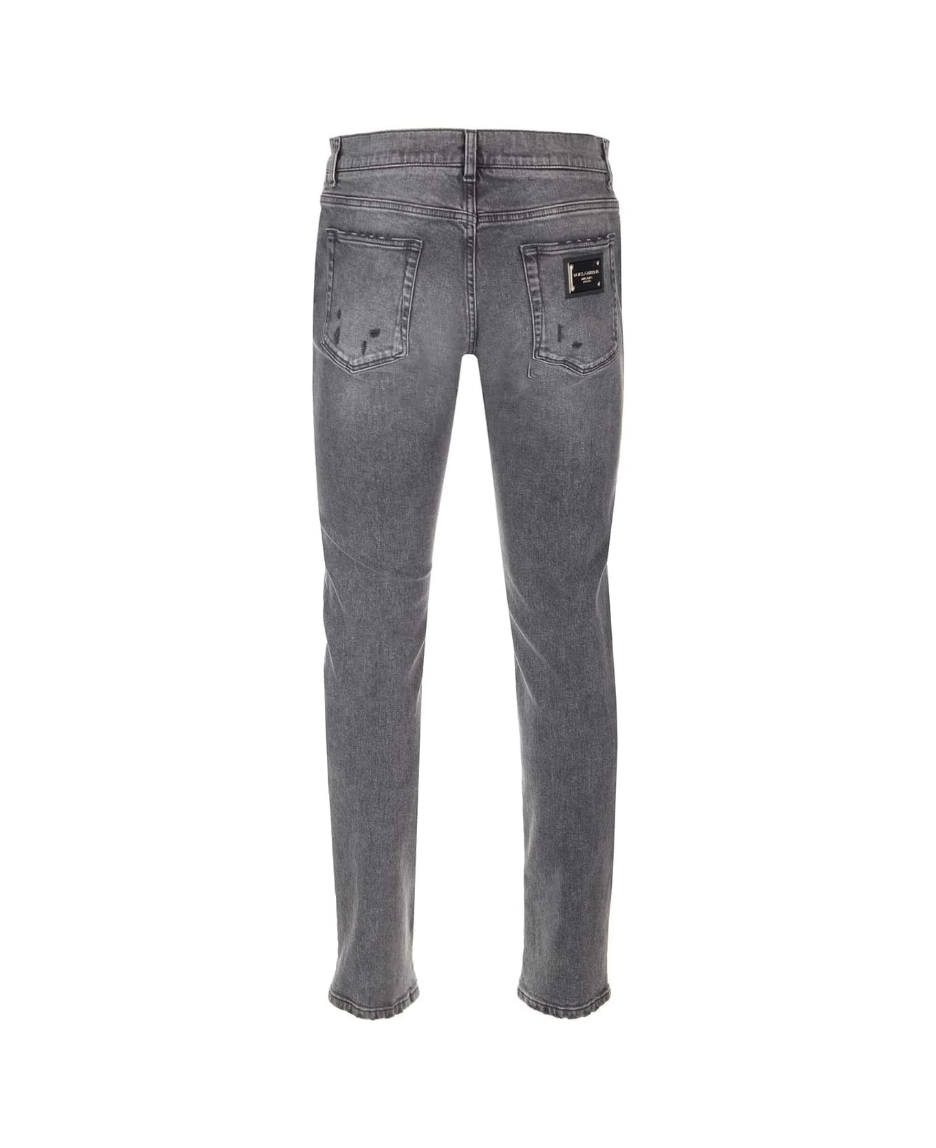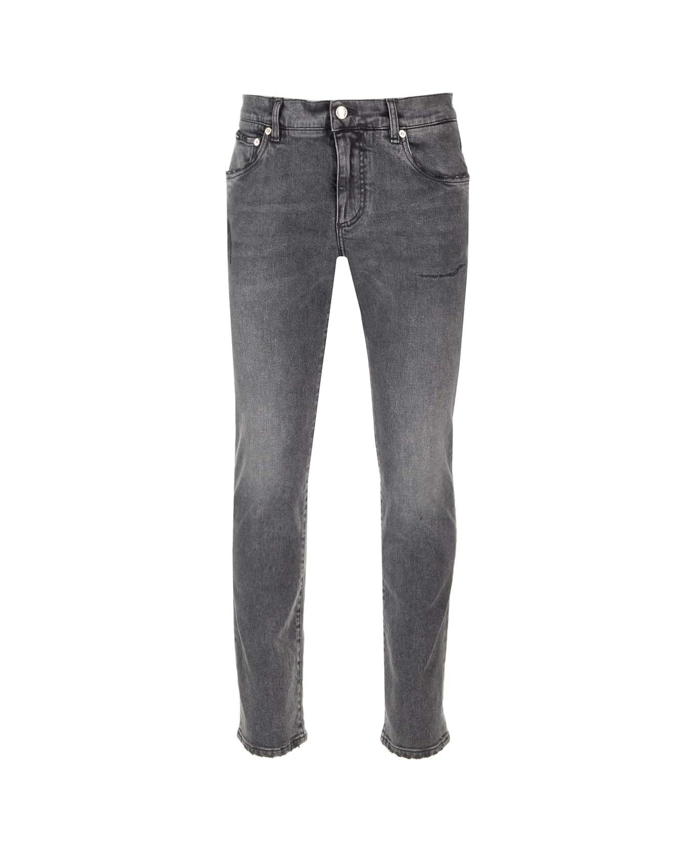 Gray stretch jeans from Dolce & Gabbana, with slim fit, 5 pockets, medium waist.