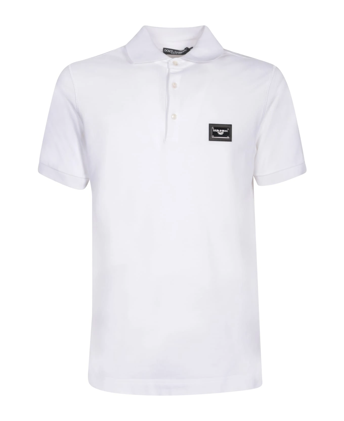 Polo collar. Short sleeves. Logo plaque. Front button fastening. Straight hem. Color: white