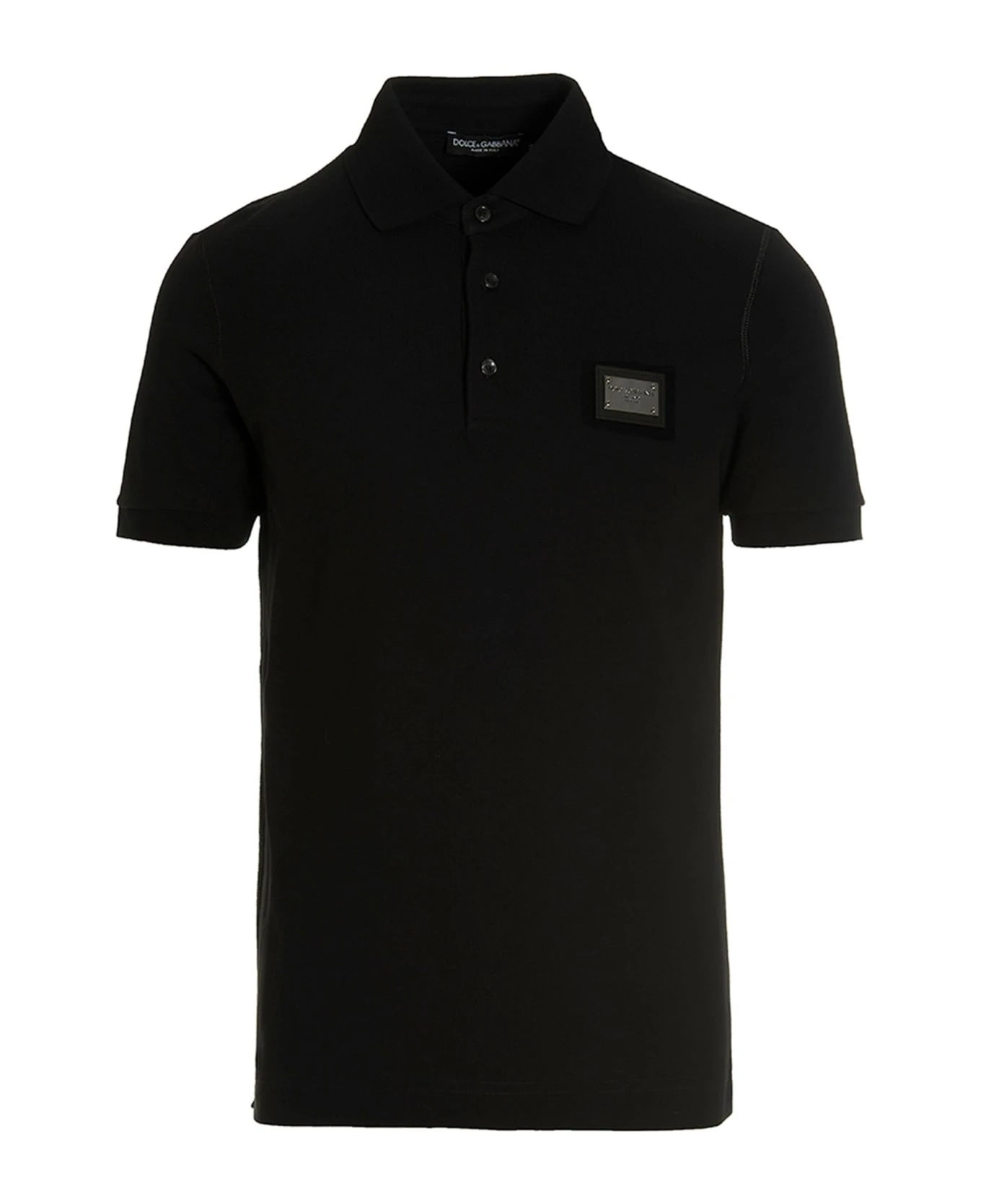 DG Essential’ piqué cotton polo shirt with front logo plaque and short sleeves.