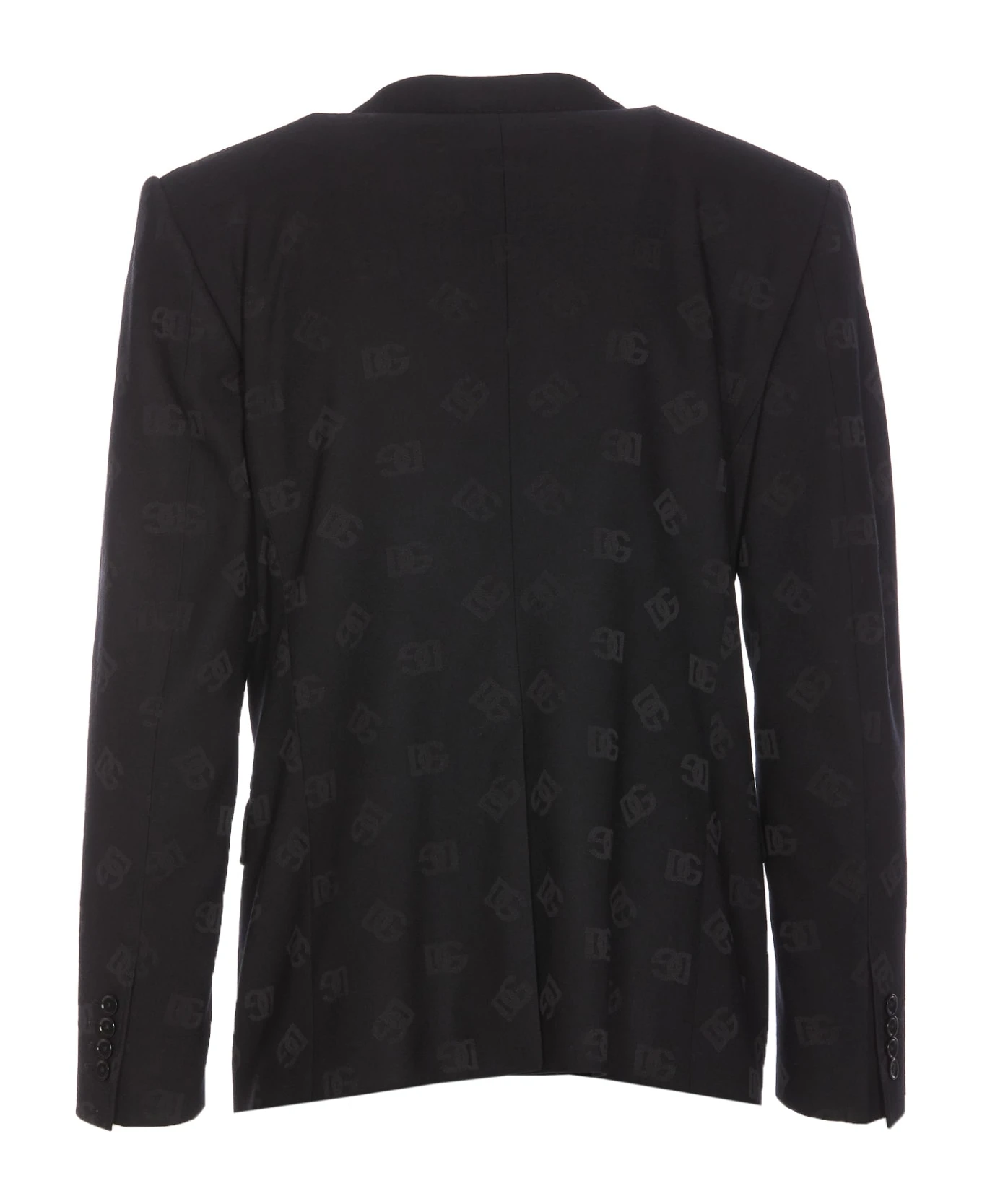 Dolce&Gabbana black Sicilia DG jacket with frontal buttons closure, all over DG logo tone on tone, long sleeves, buttons on cuffs, reverse detail on the front