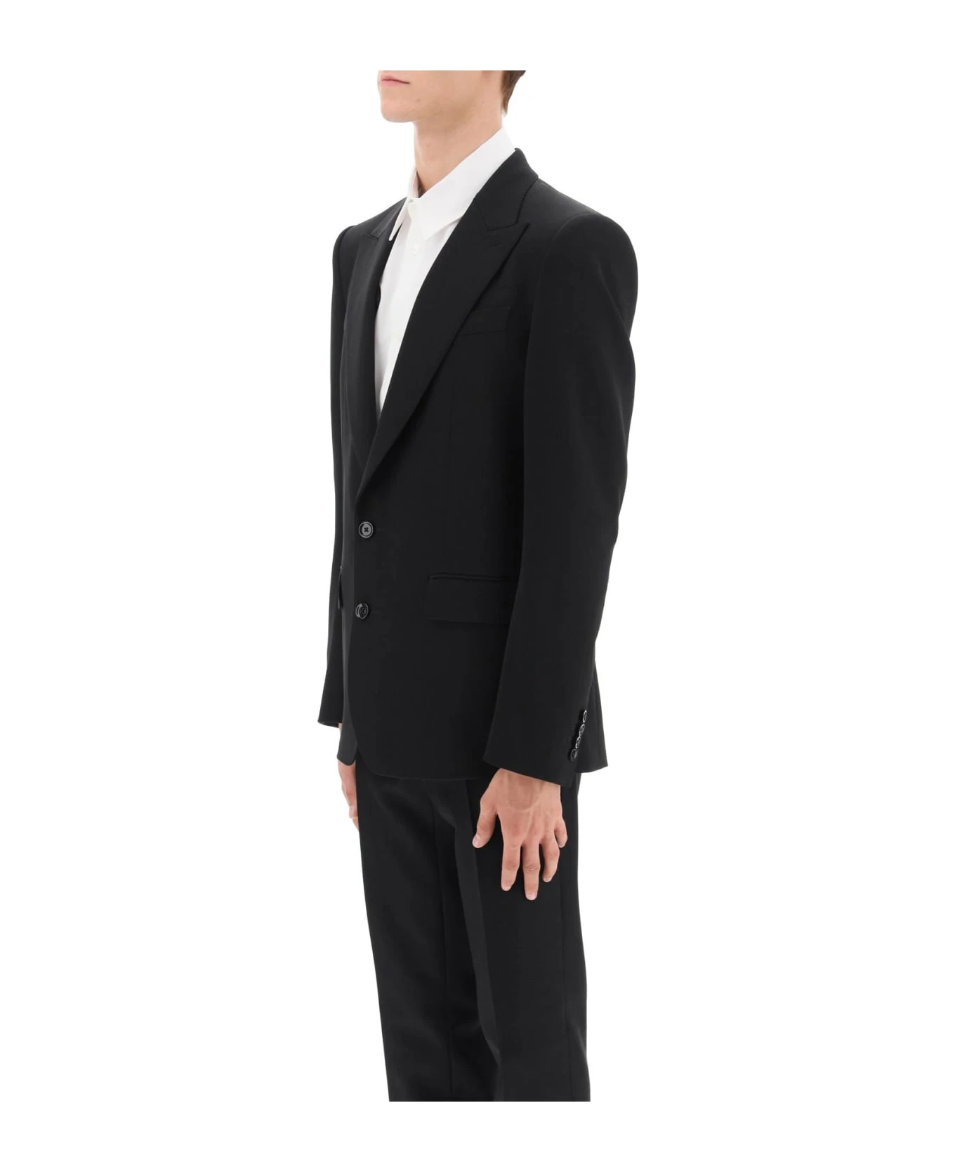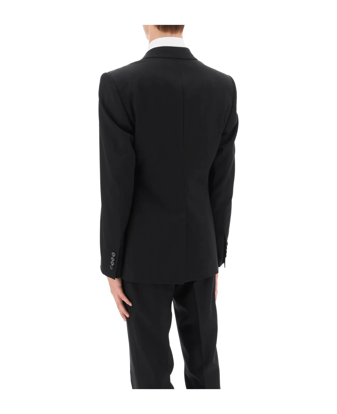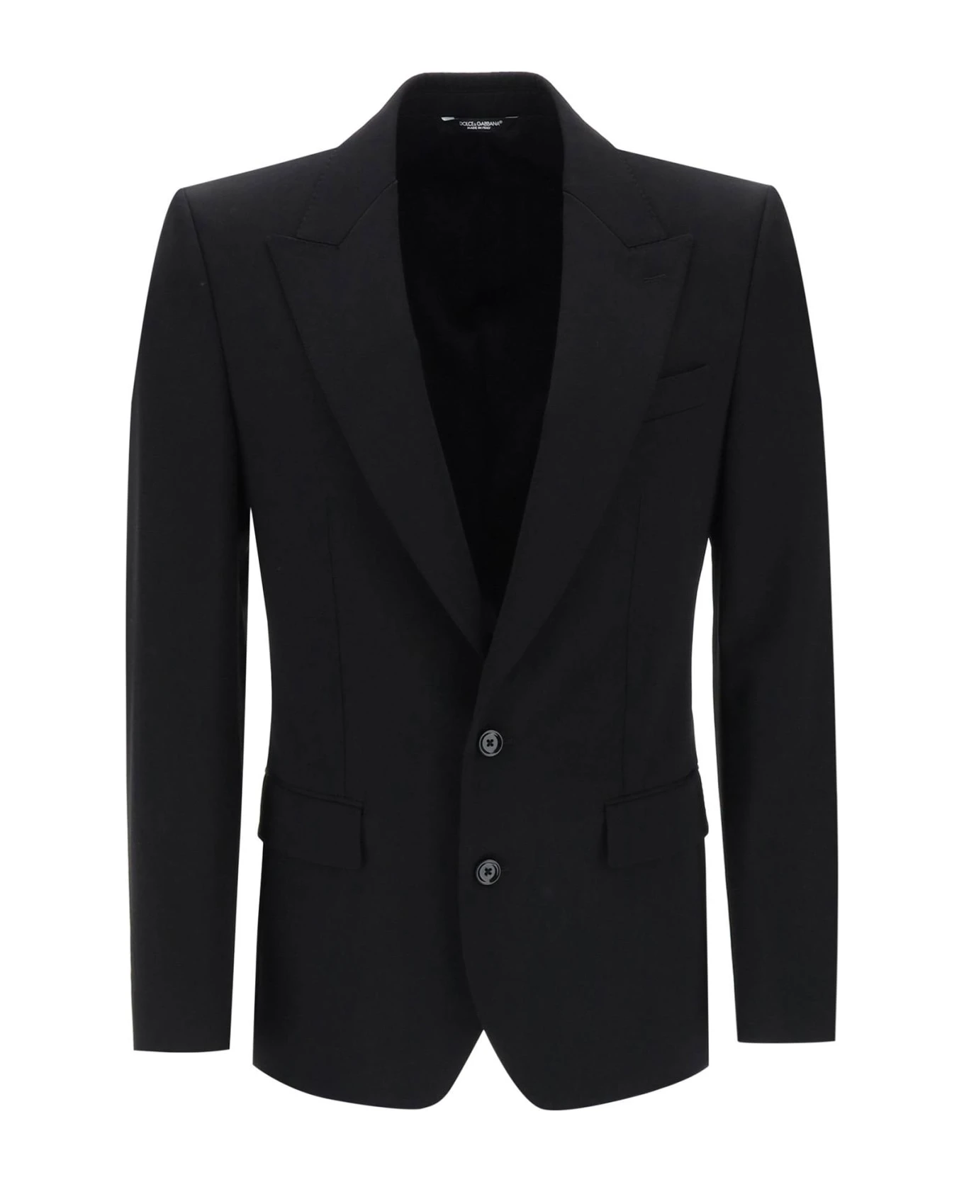 Tailoring jacket by Dolce&Gabbana crafted in virgin wool faille with single-breasted design and double-button closure. It features notch lapel, chest welt pocket, jetted pockets with flap, buttoned cuffs and center-back vent. Finished with pick-stitching and lined in silk with pockets on the inside. Sicilia slim fit with structured padded shoulders. The model is 187 cm tall and wears size IT 48.