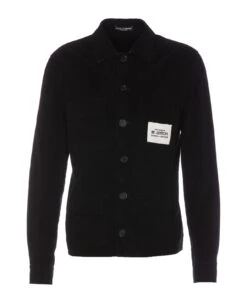 Dolce&Gabbana black Sporty Stretch Fustian shirt, velvet model, frontal buttons closure, frontal patch logo and frontal pocket