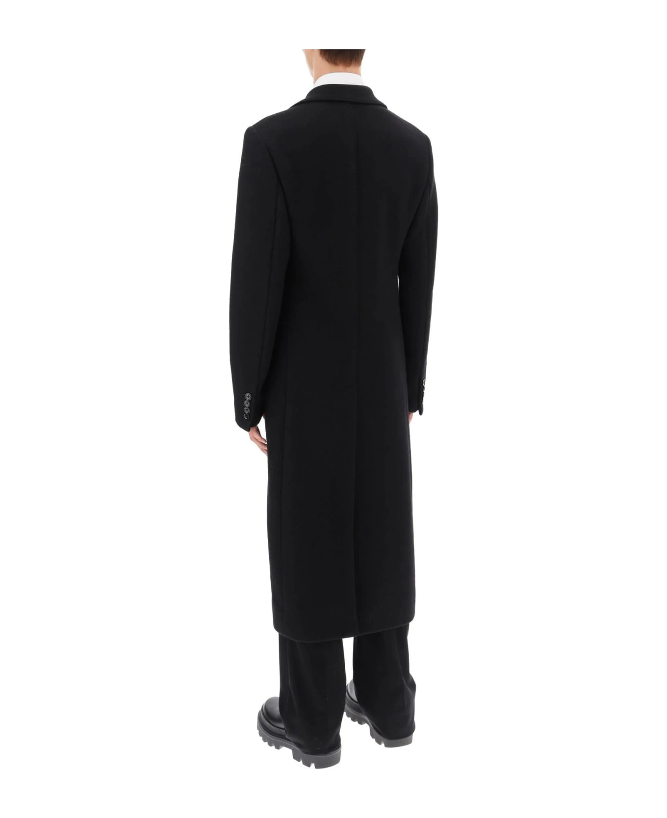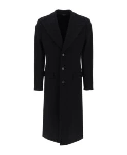 Deconstructed coat by Dolce&Gabbana made from techno-wool jersey with single-breasted design and three-button closure. It features notch lapel, chest welt pocket, jetted pockets with flap, buttoned cuffs and deep vent at center back. Unlined and provided with inner pockets. Slim fit with calf length. The model is 187 cm tall and wears size IT 48.