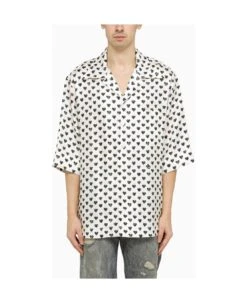 White silk shirt from Dolce & Gabbana featuring an all-over print, short sleeves, a straight hem, a front button placket and a buttoned chest pocket.