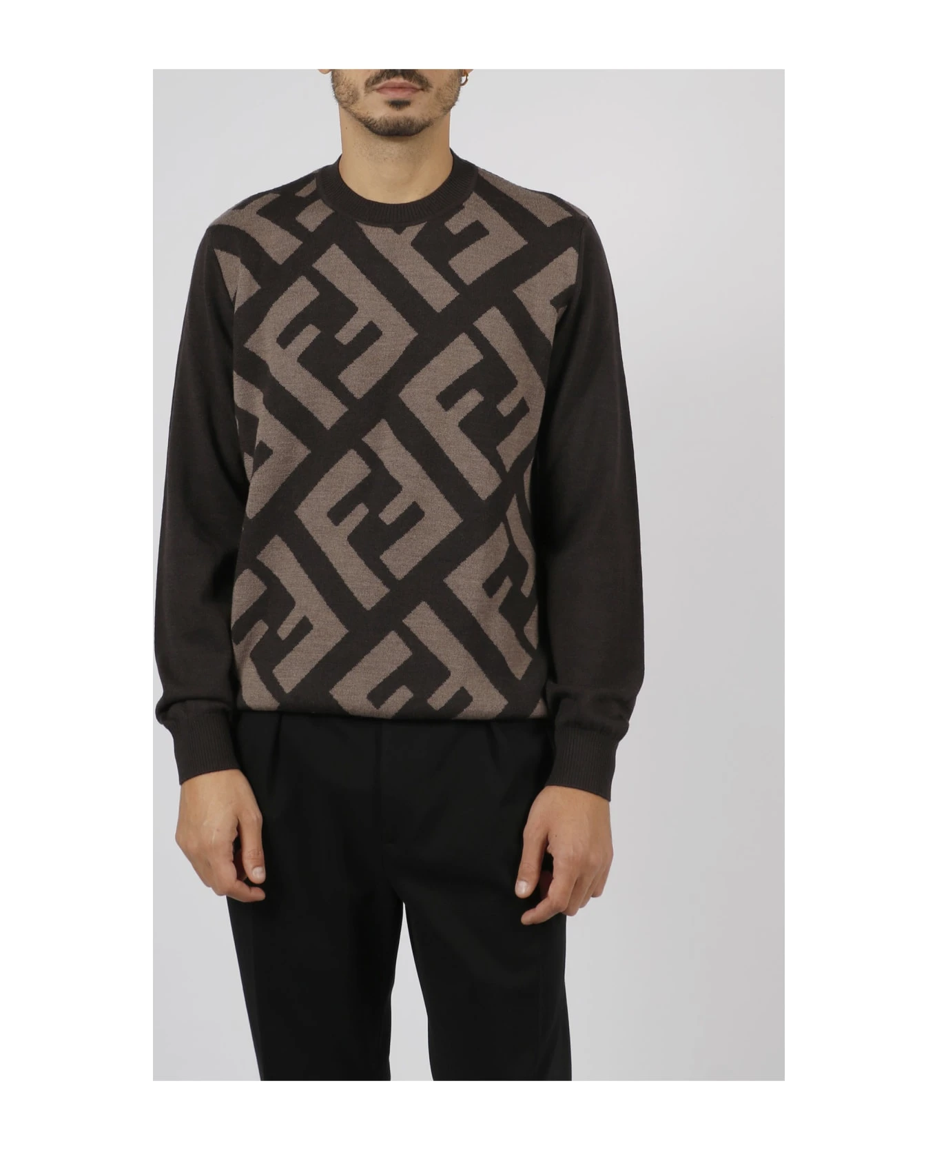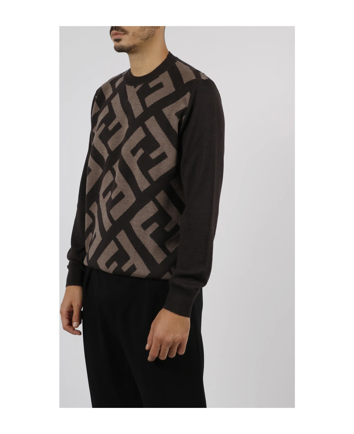 Fendi wool sweater, with diagonal oversized FF motif intarsia. – FW23