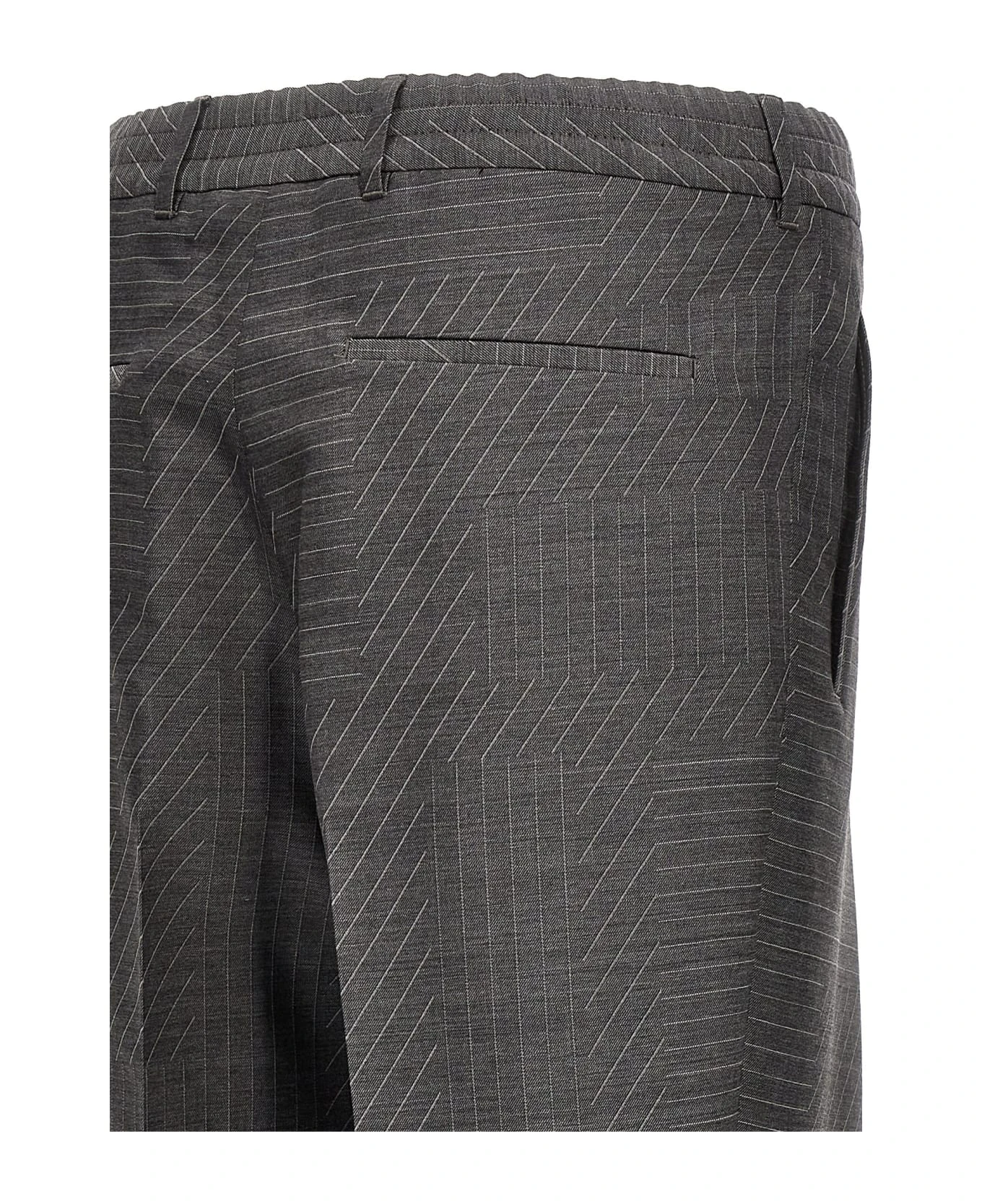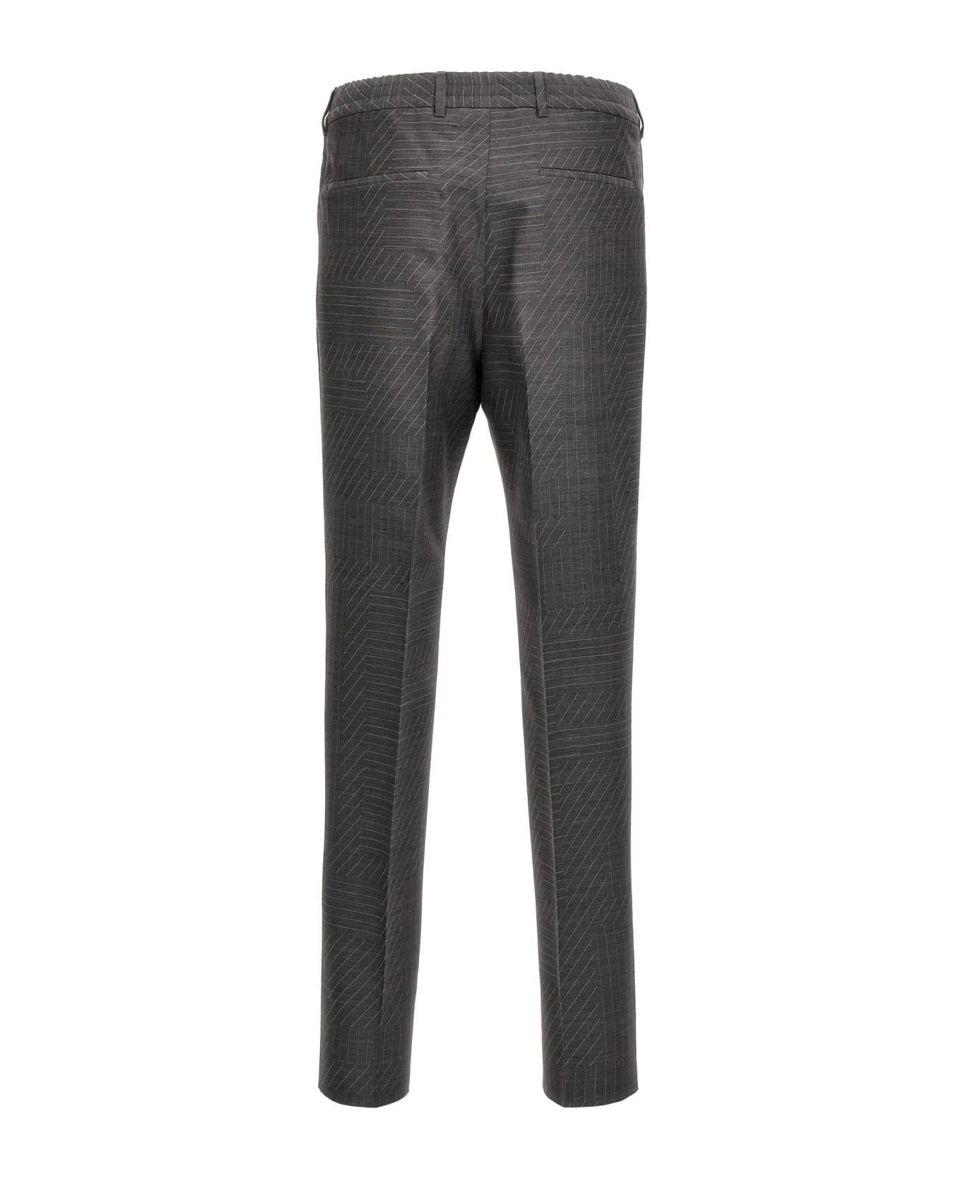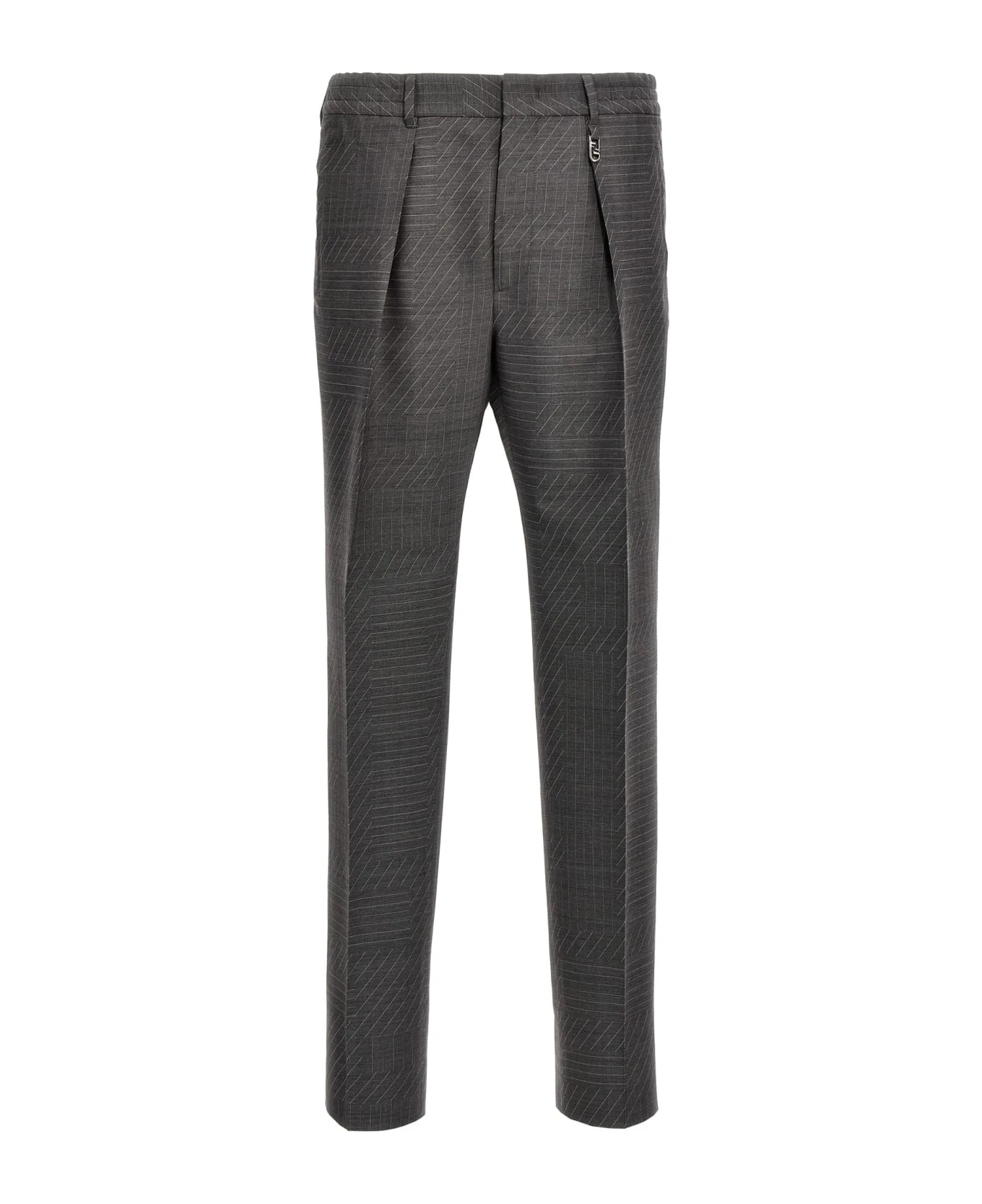 ‘Fendi Shadow’ wool pants with all-over pattern, zip and hook closure, elastic waistband, pockets, pleated leg.