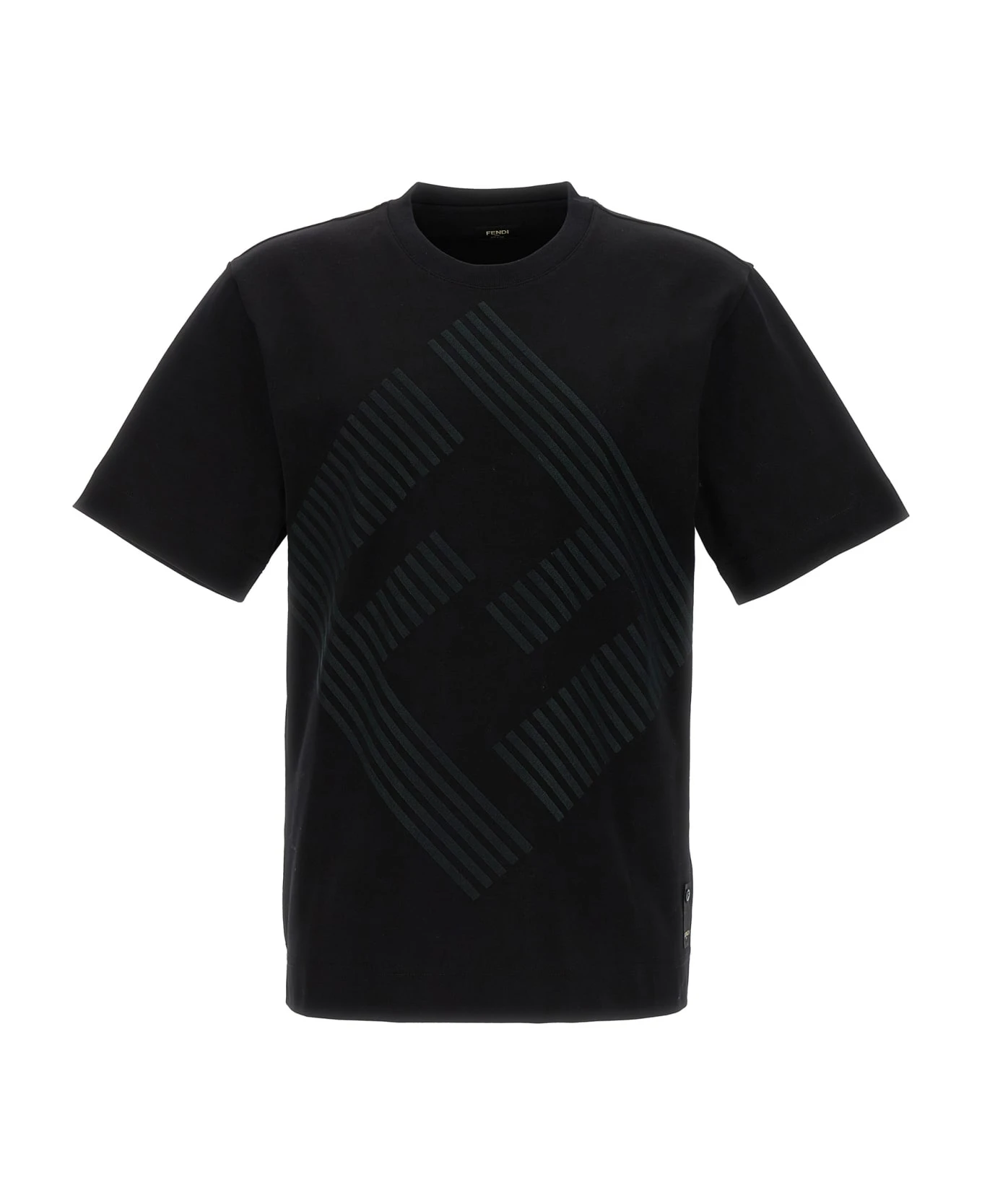 ‘Fendi shadow’ cotton, crewneck t-shirt with maxi embroidered front logo.