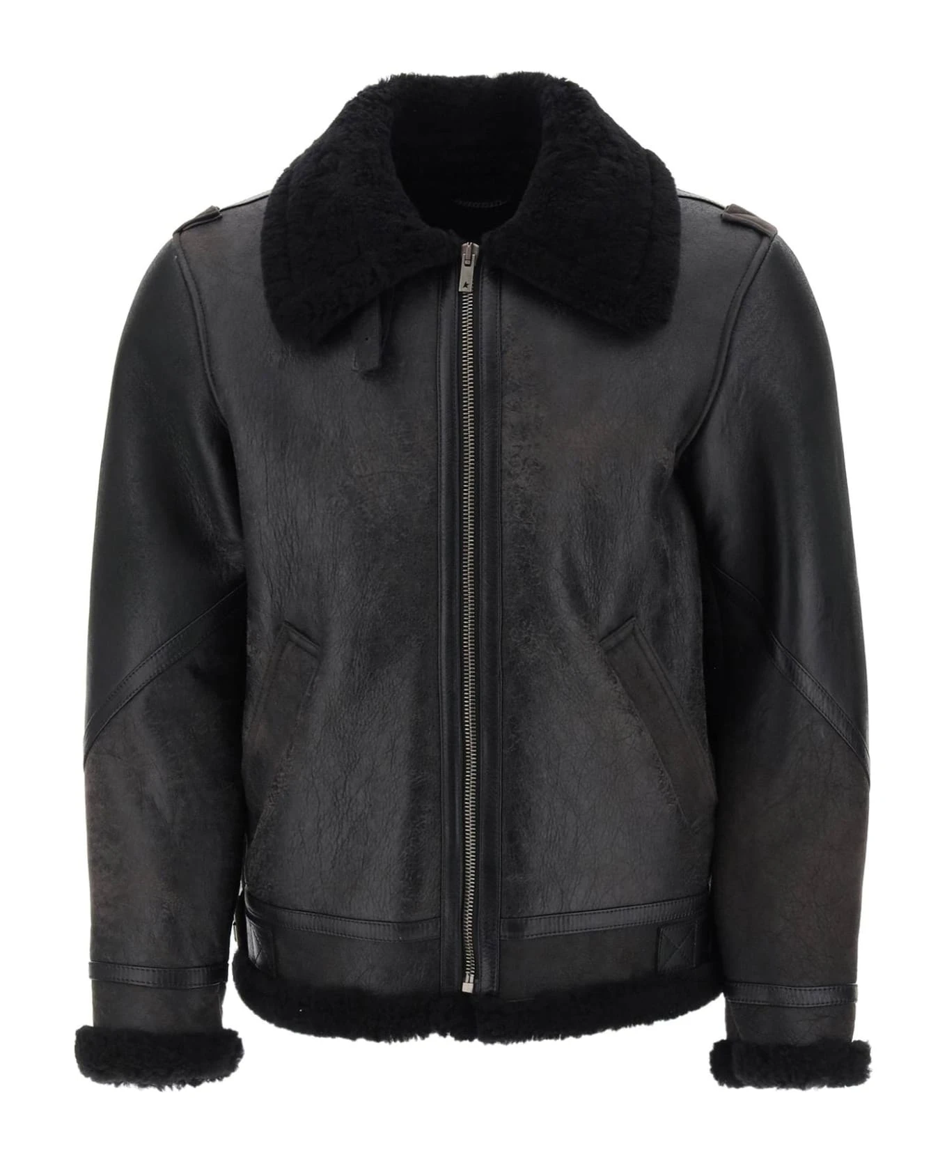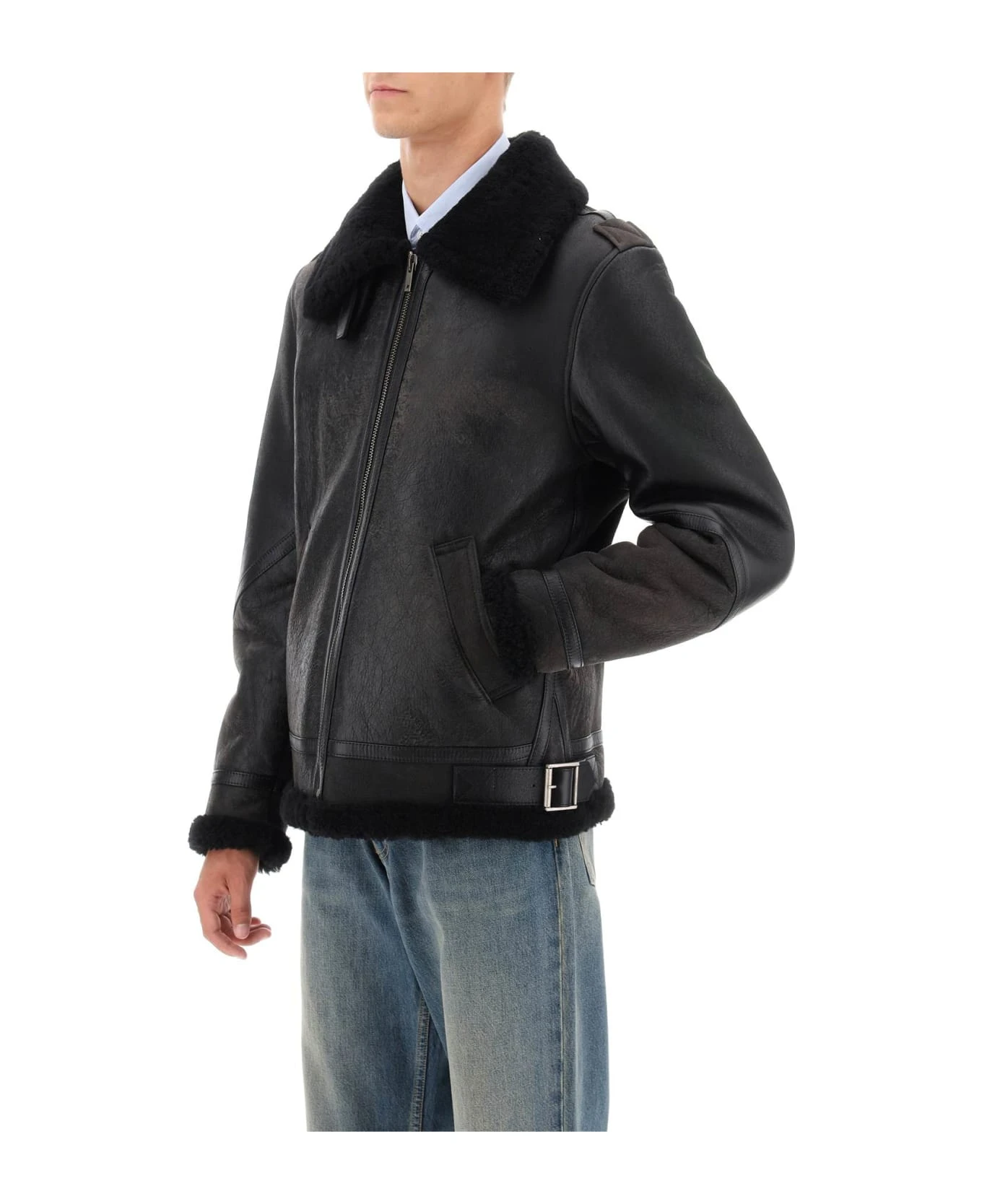 Golden Goose zip-up jacket crafted in merino shearling with a used-effect finish. Designed with a wide shirt collar and undercollar straps, it features welt hand pockets and buckled side hem straps. This style is complete with tonal piping and fur lining. The model is 187 cm tall and wears a size IT 48.