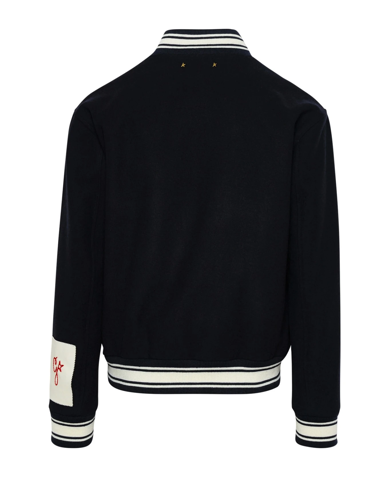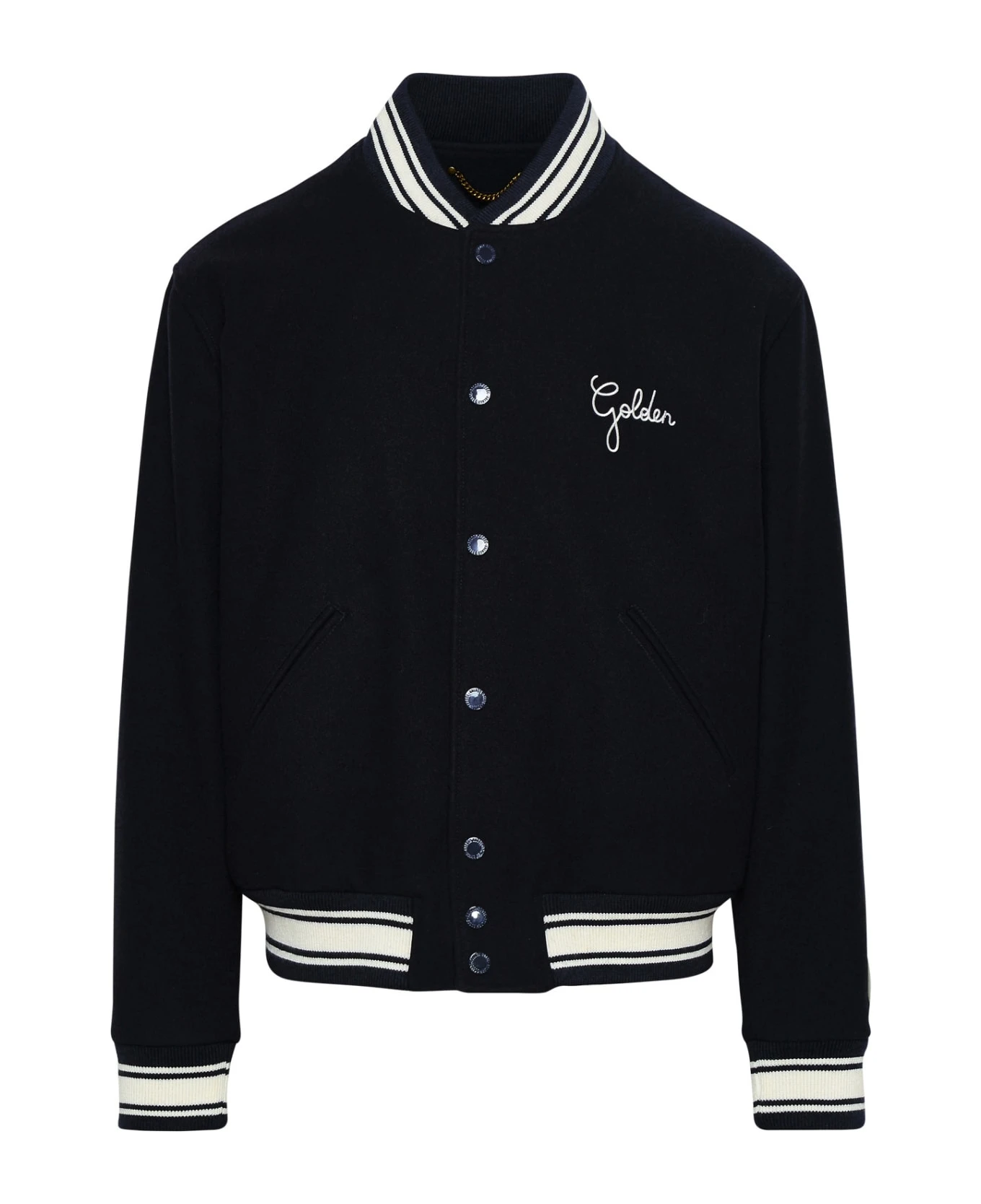 Contrasting ribbed round neck, embroidered logo on the chest, front pockets, button closure, and contrasting ribbed cuffs and hem