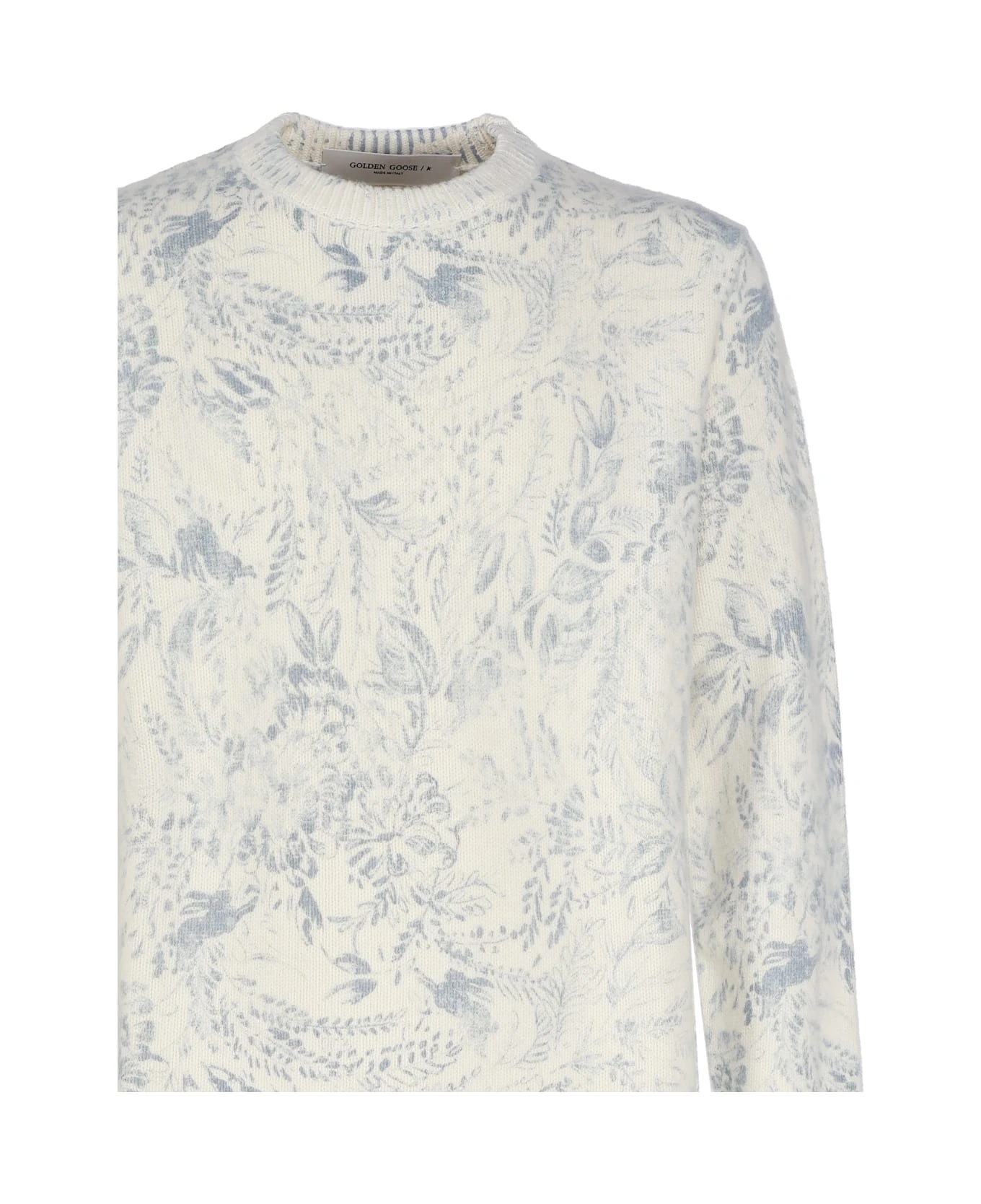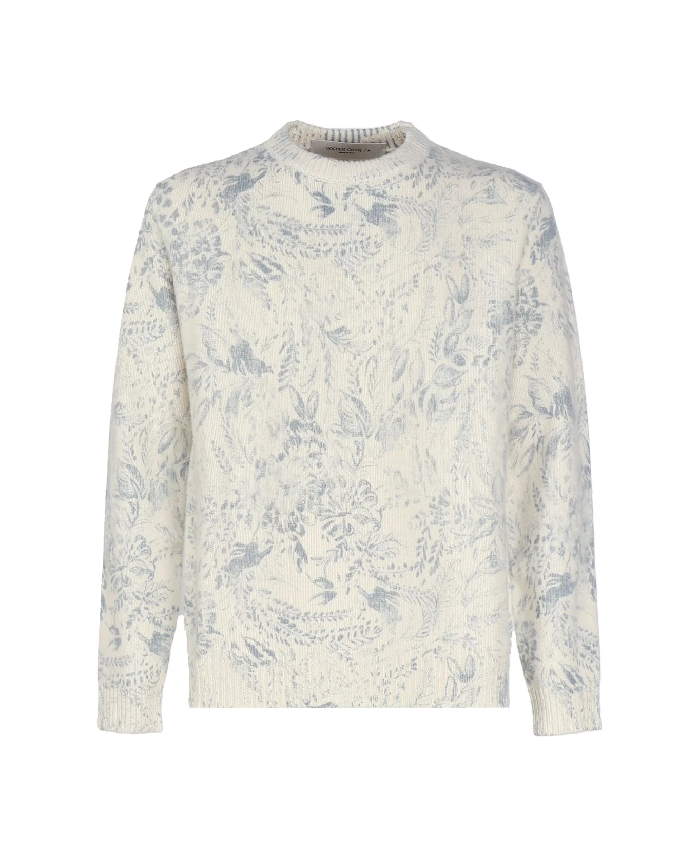 White heritage Crew-neck Sweater With All-over Toile De Jouy Motif from Golden Goose