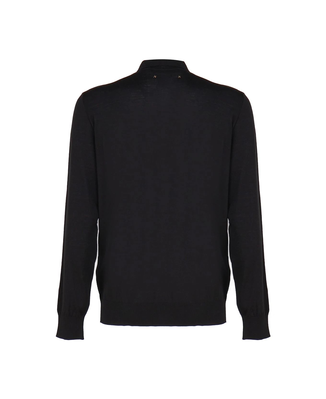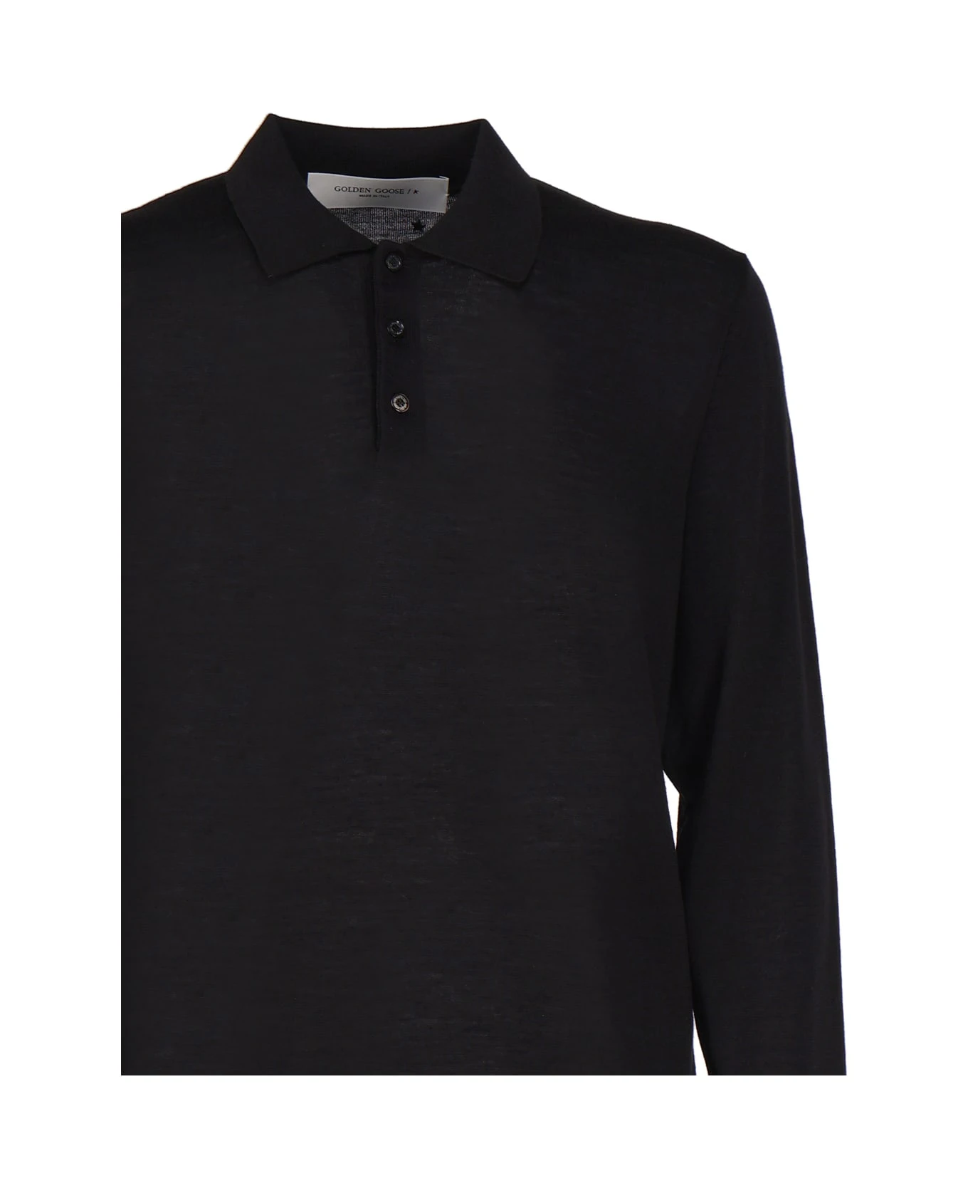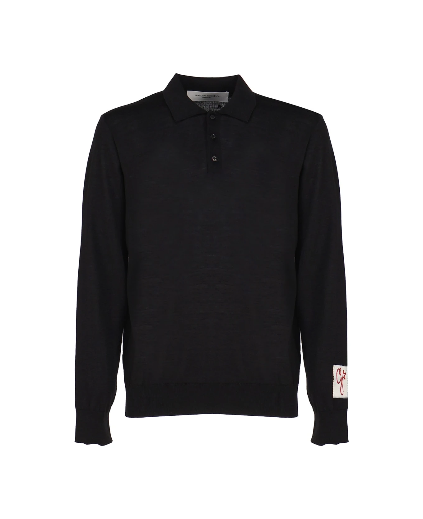 Black Long-sleeved Polo Shirt In Merino Wool from Golden Goose