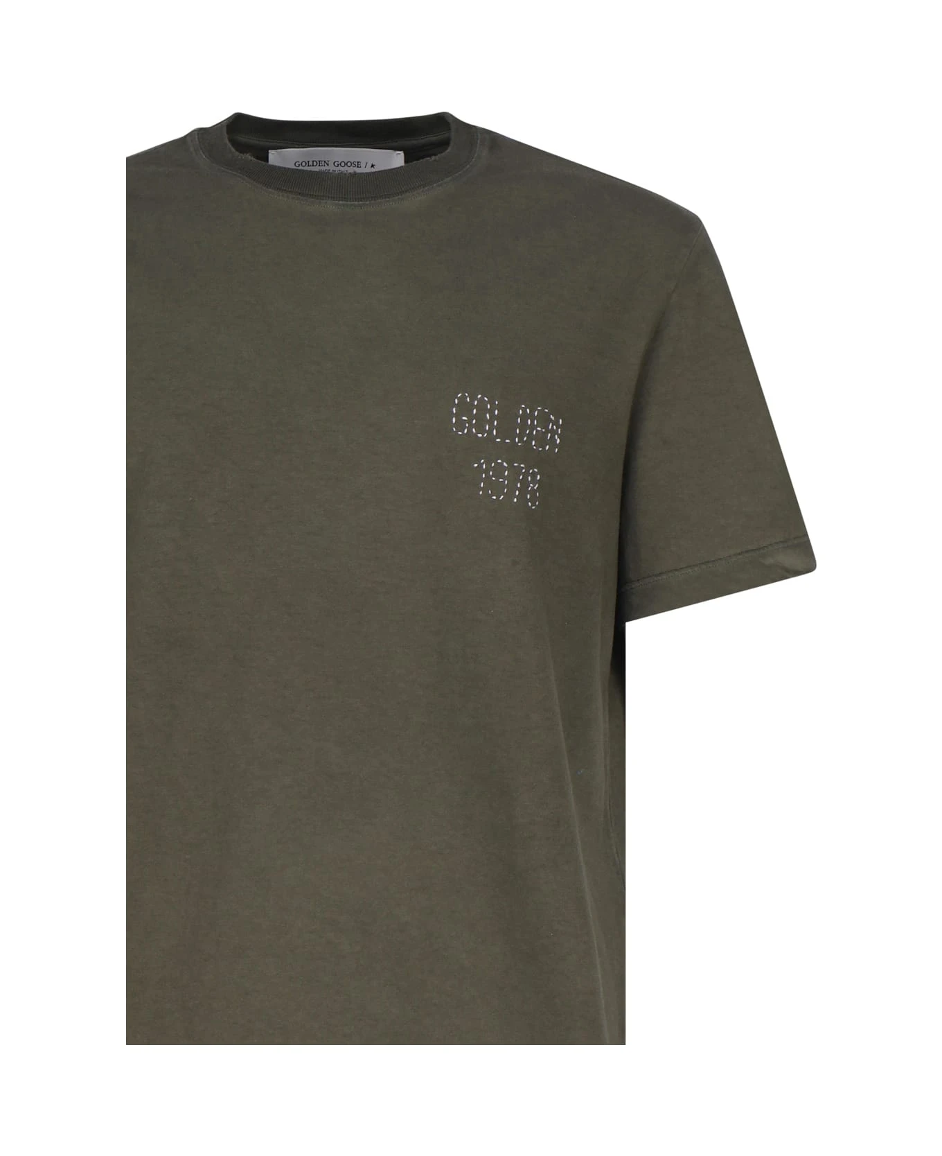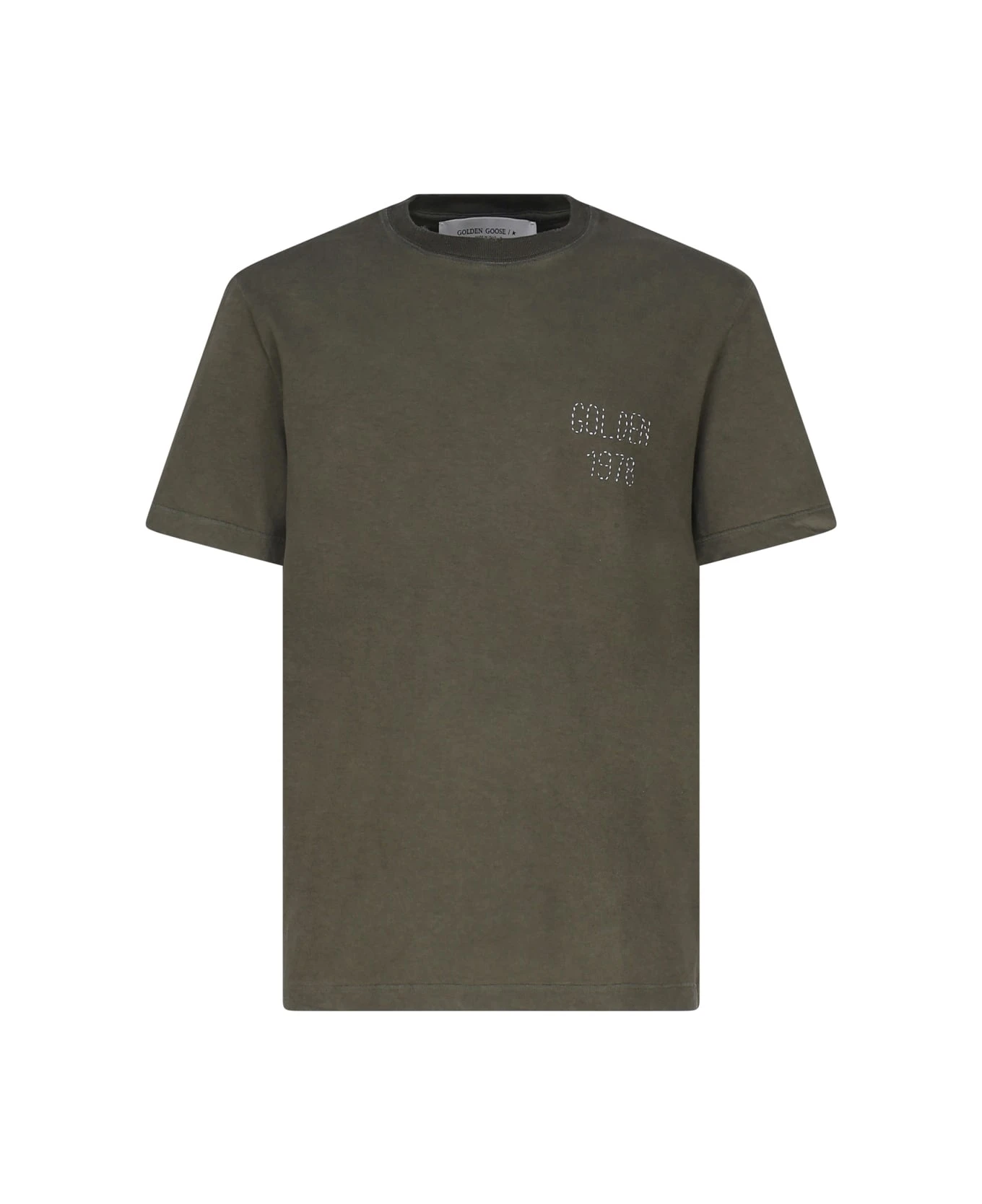 Green T-shirt With Embroidery On The Front from Golden Goose