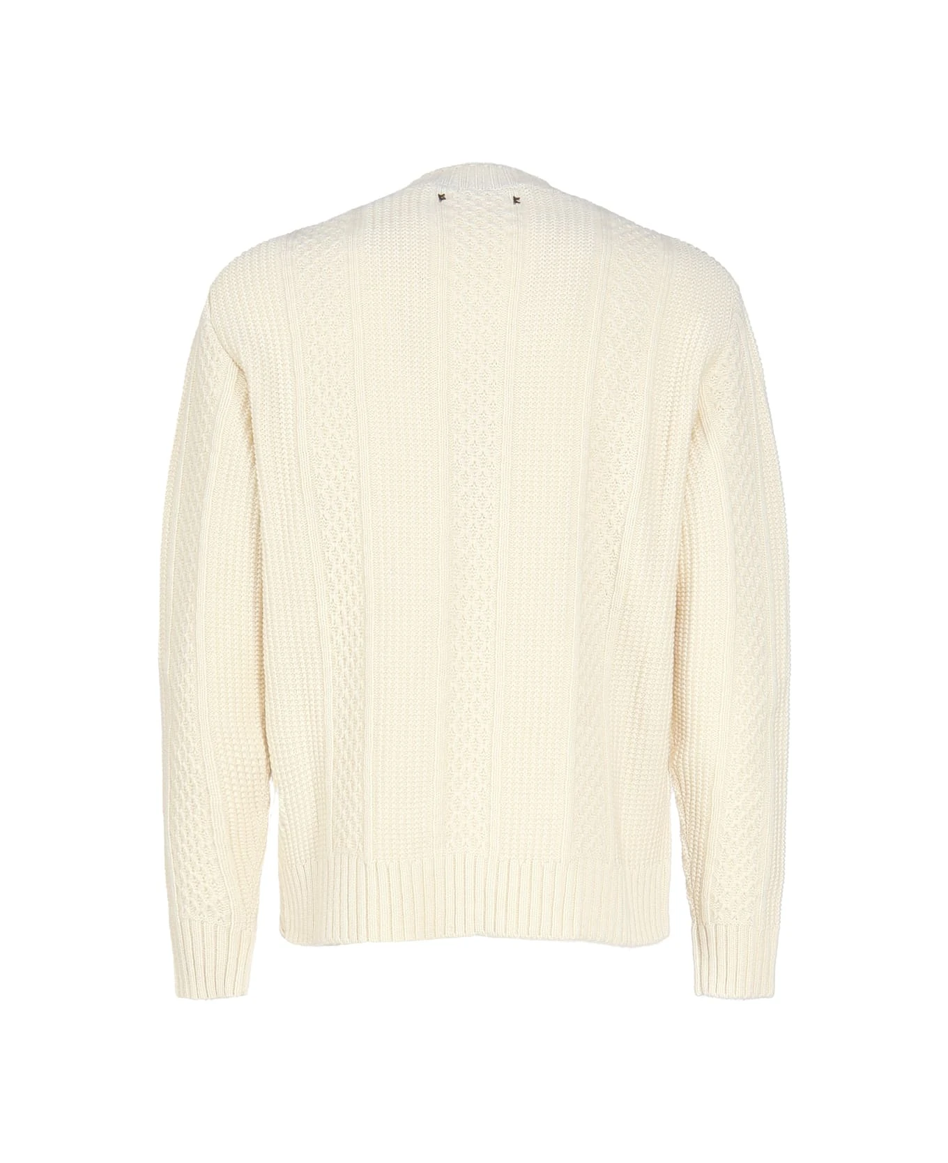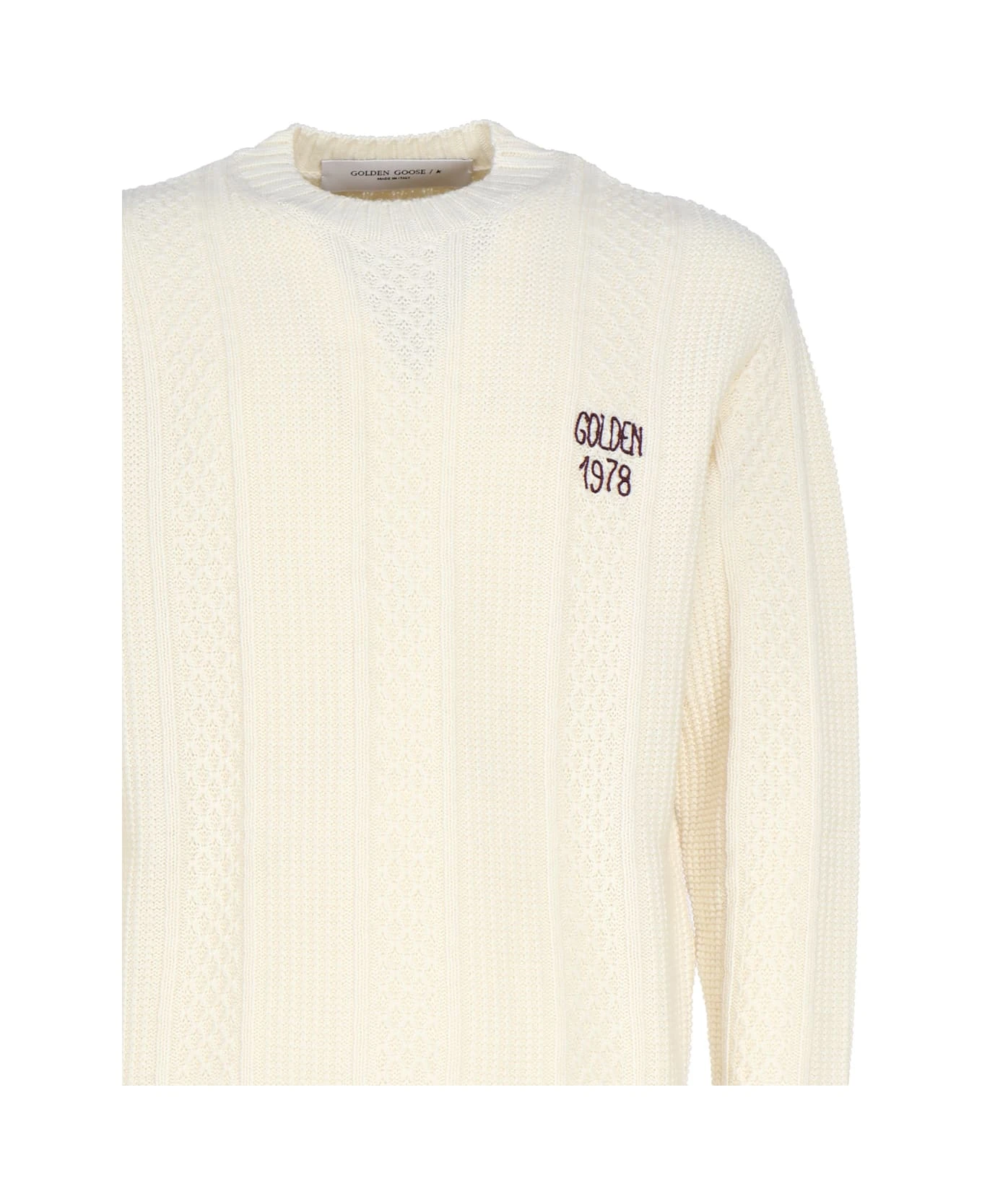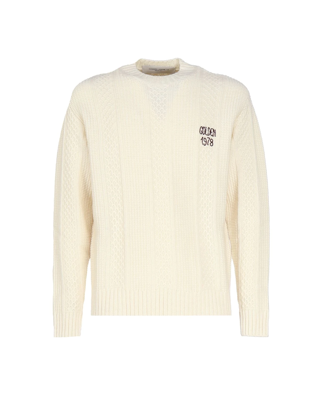 White Wool Crewneck Sweater With Embroidery from Golden Goose