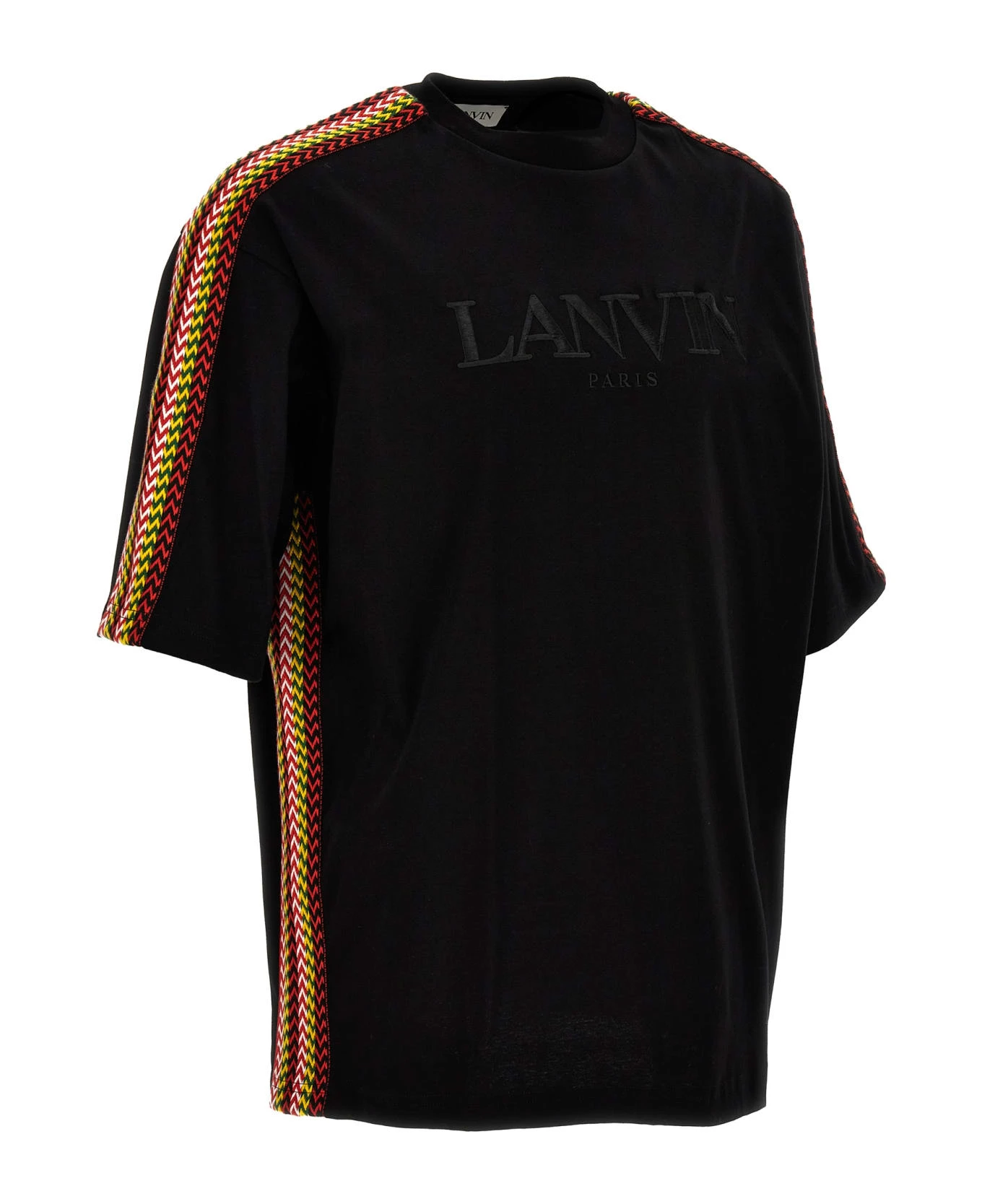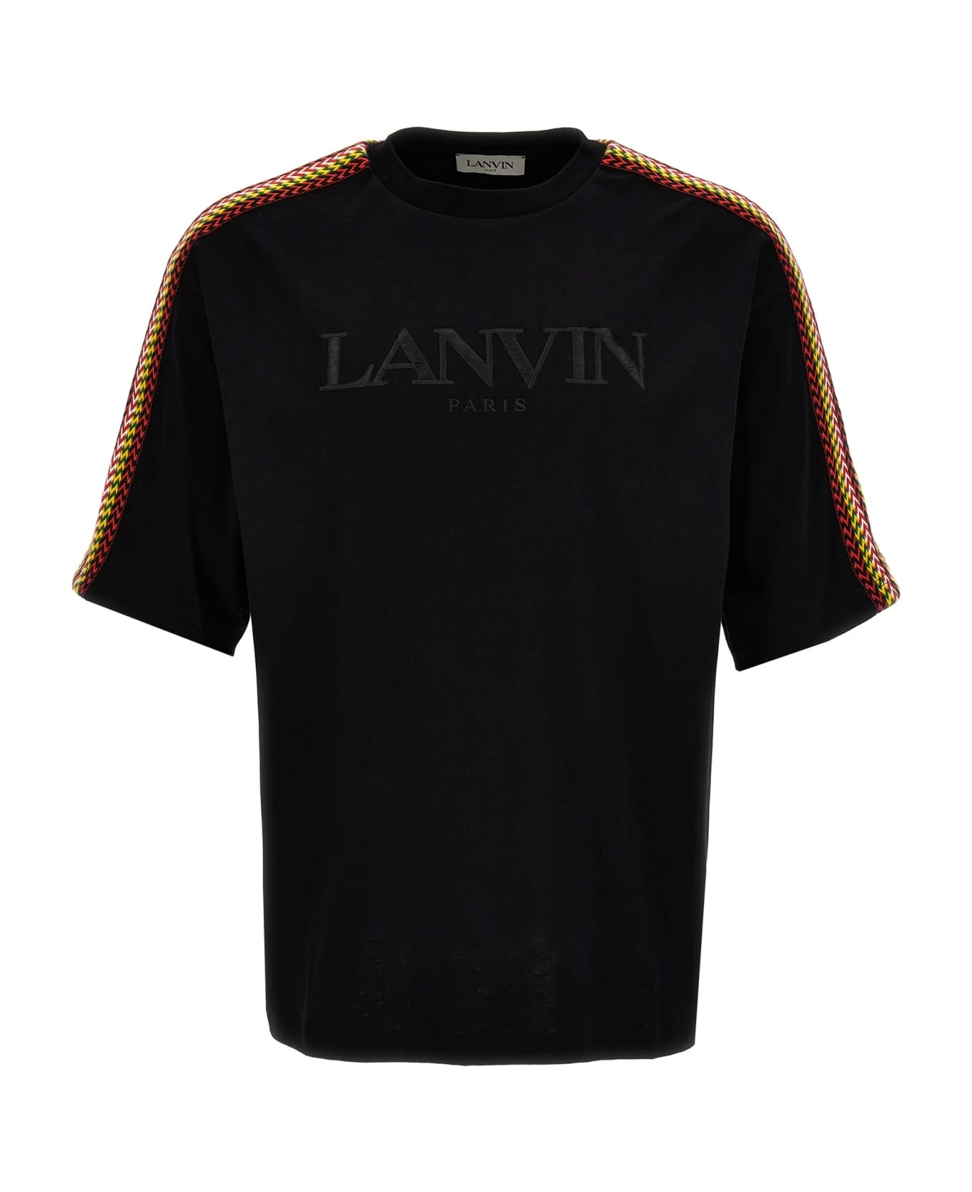 Cotton, crewneck t-shirt with contrasting intertwined bands and tone-on-tone logo embroidery.