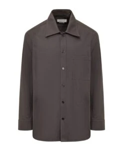 Grey shirt with long sleeves. Front button closure. Chest pocket. Buttons on the cuffs. Embroidered logo on the front.