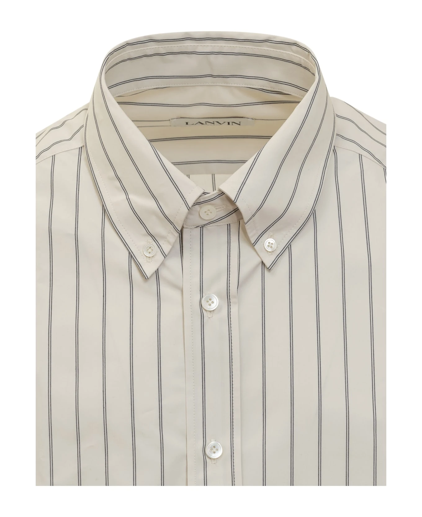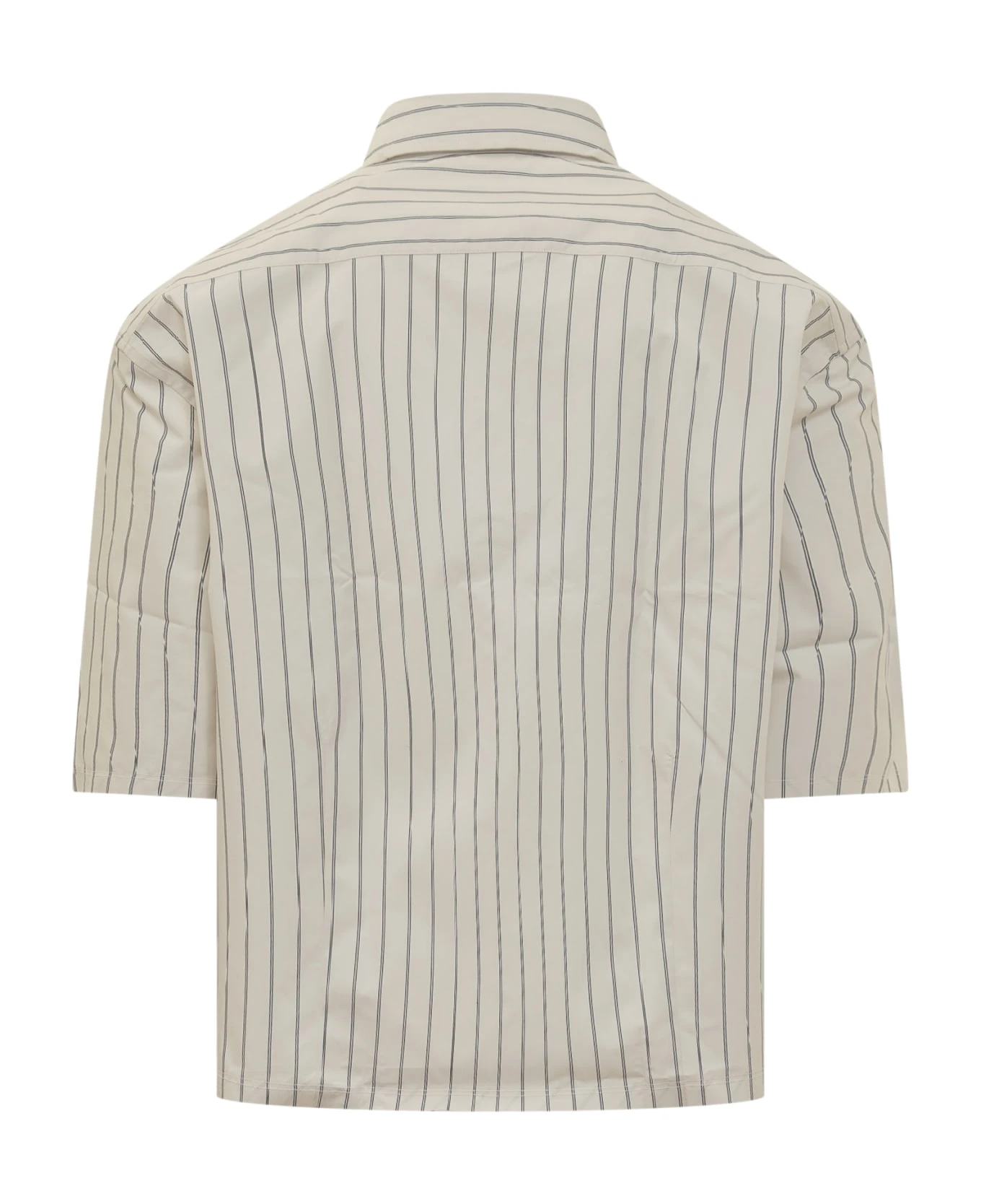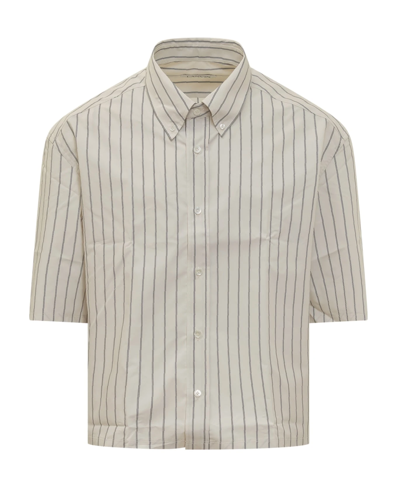 Short-sleeved shirt. Cropped fit. Classic collar. Button closure. Striped pattern.