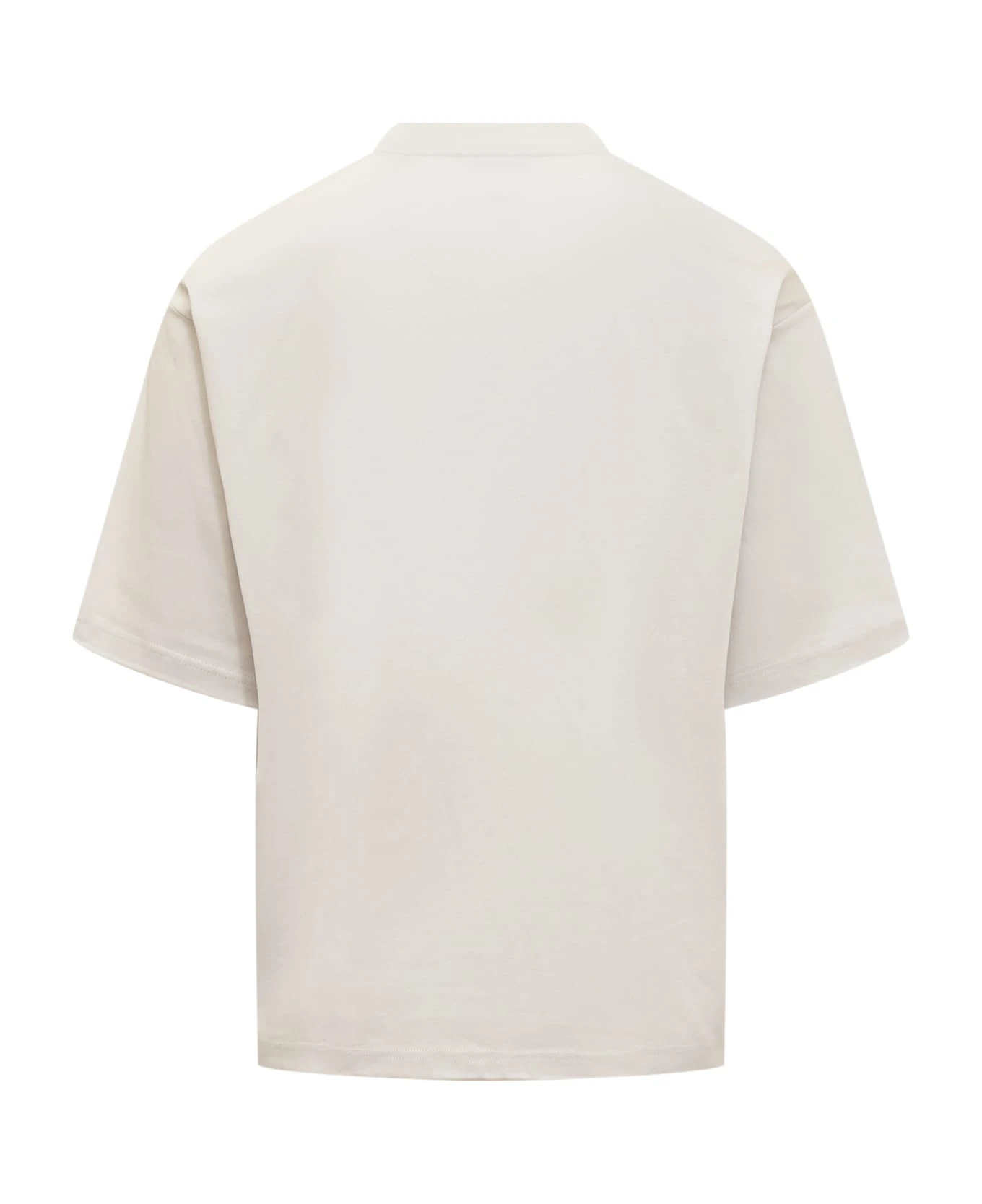 Short-sleeved T-shirt. Crew neck. Curb logo with fringe embroidered on the front.