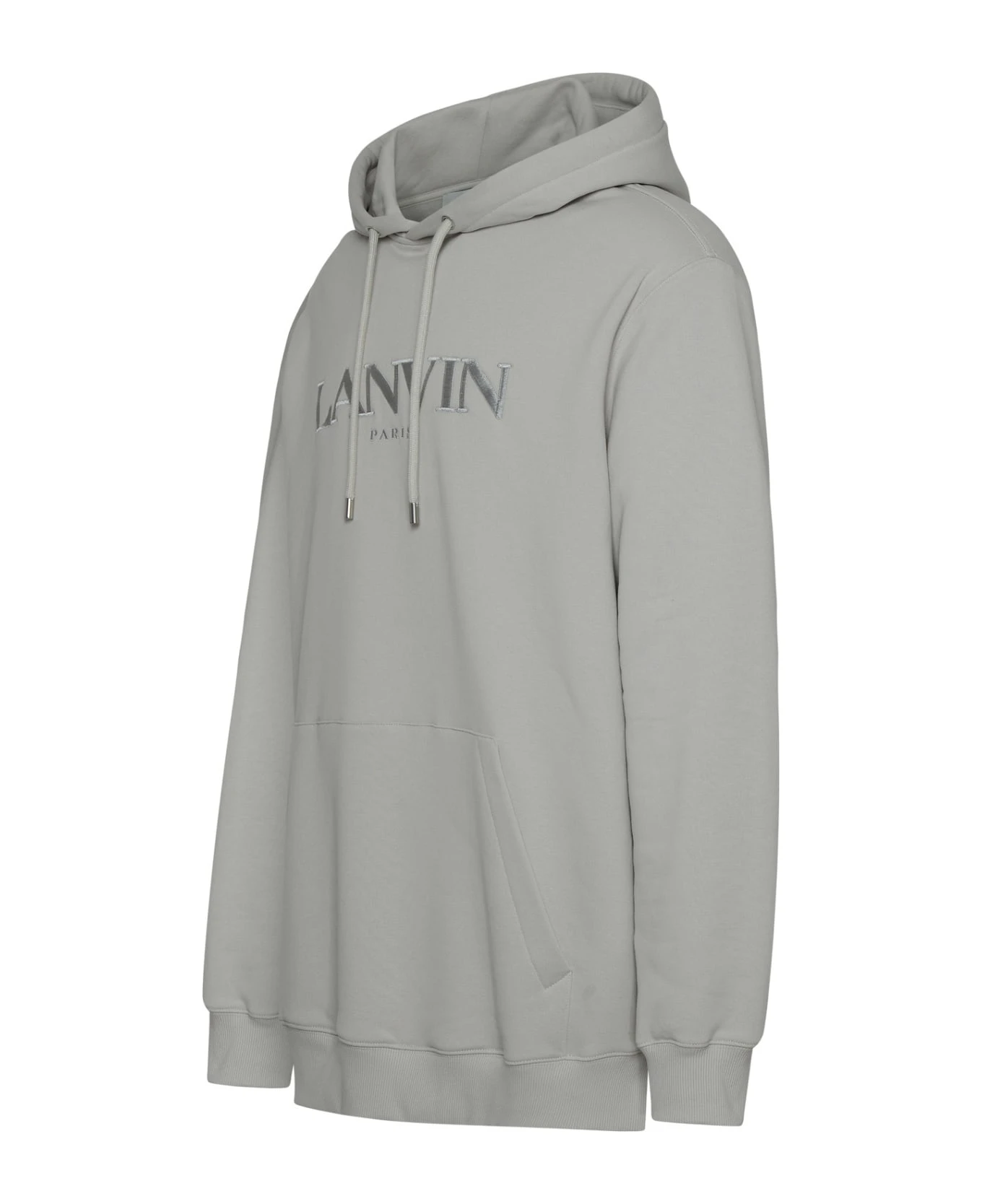 Drawstring hood, embroidered LANVIN logo on the chest, front pouch pocket, and ribbed cuffs and hem