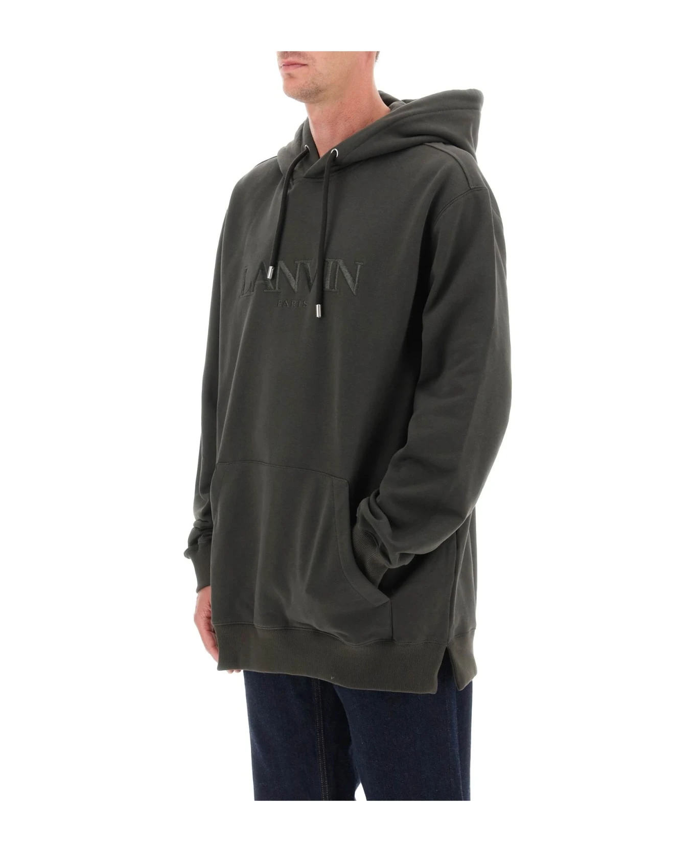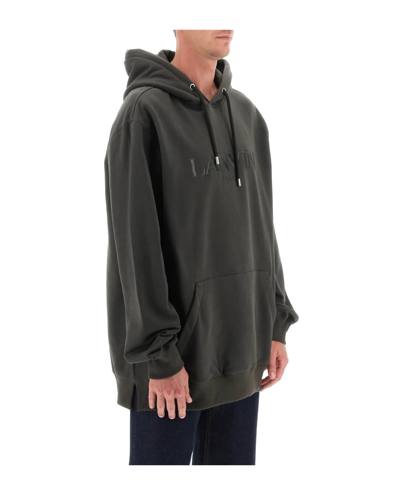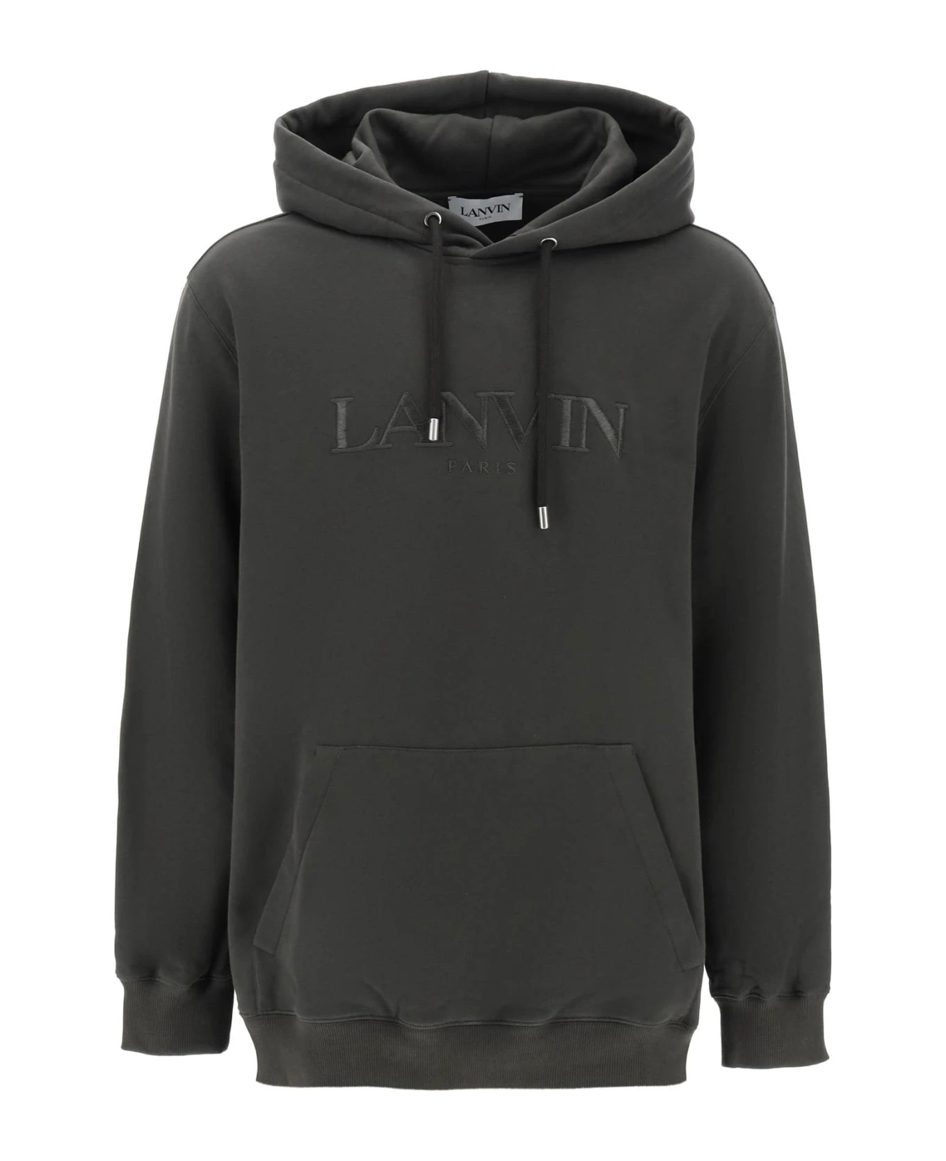 Lanvin sweatshirt crafted in fleece-back cotton, characterized by tonal Curb logo embroidered on the chest. It features adjustable hood with drawstring, kangaroo pocket, side slits and ribbed trims. Oversized fit with dropped shoulders. The model is 187 cm tall and wears size L.