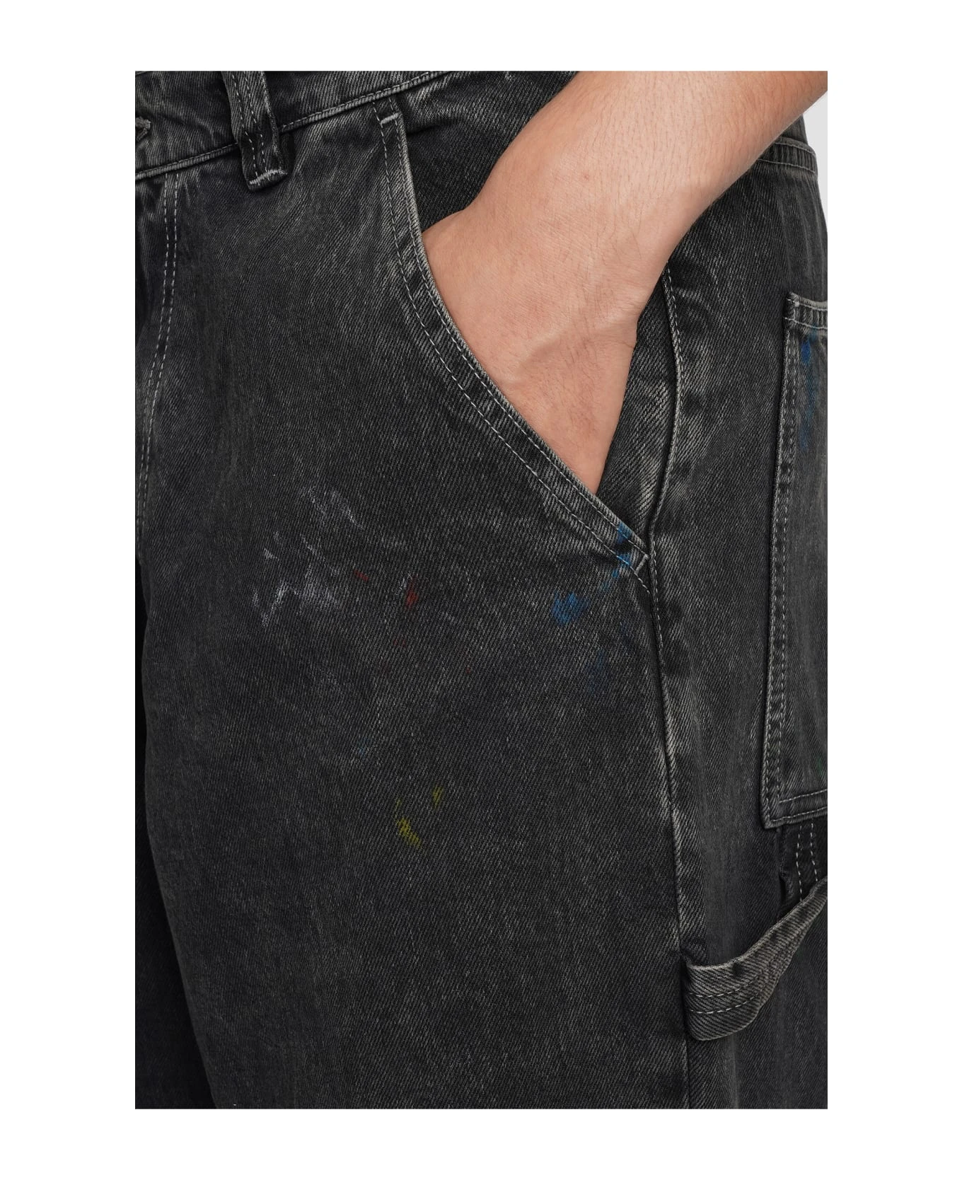Jeans in black denim, button and zip closure, waist belt loops, loose fit, four pockets, 100% cotton, Made in Italy, Model is 1. 83 and wears size 31
