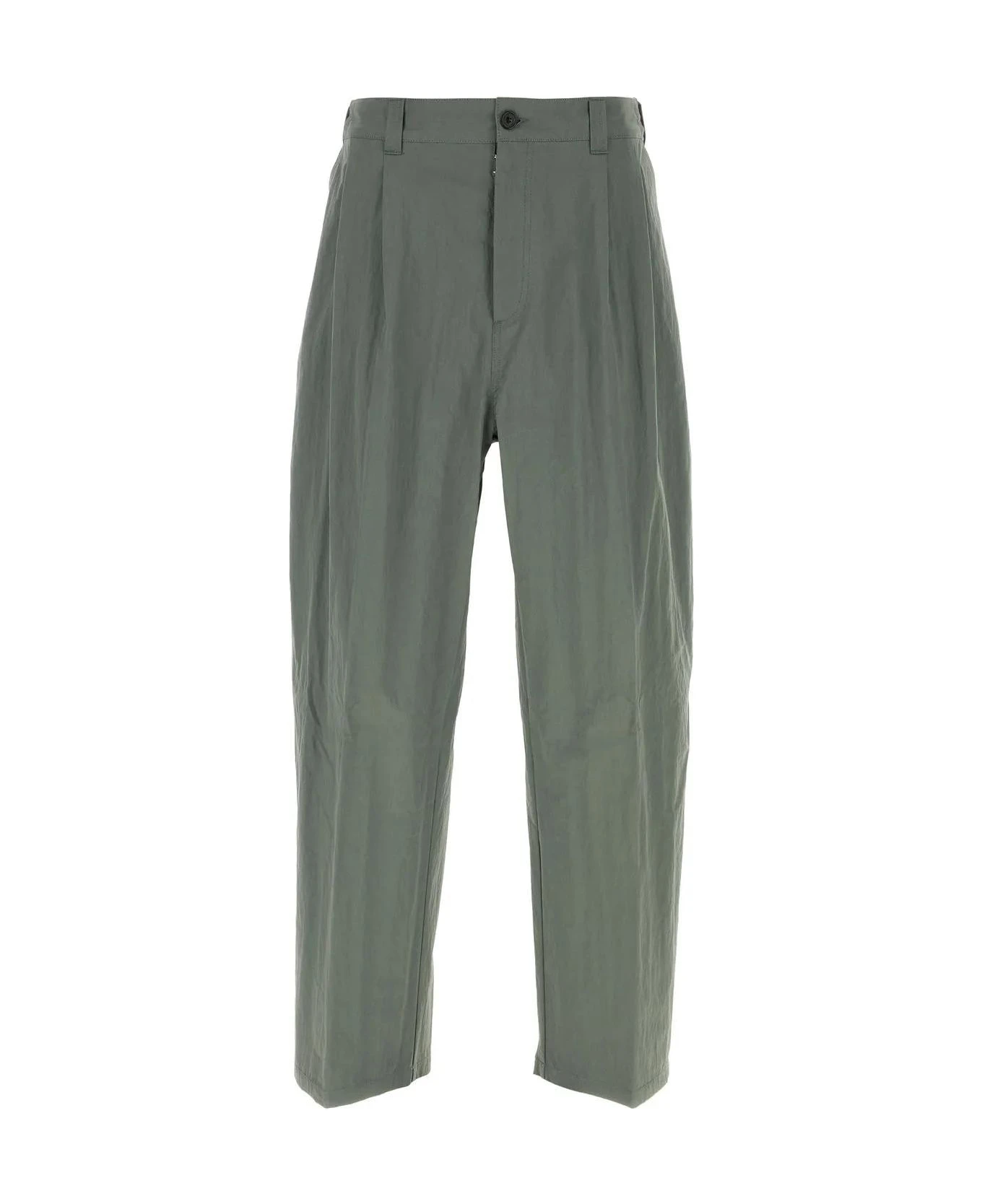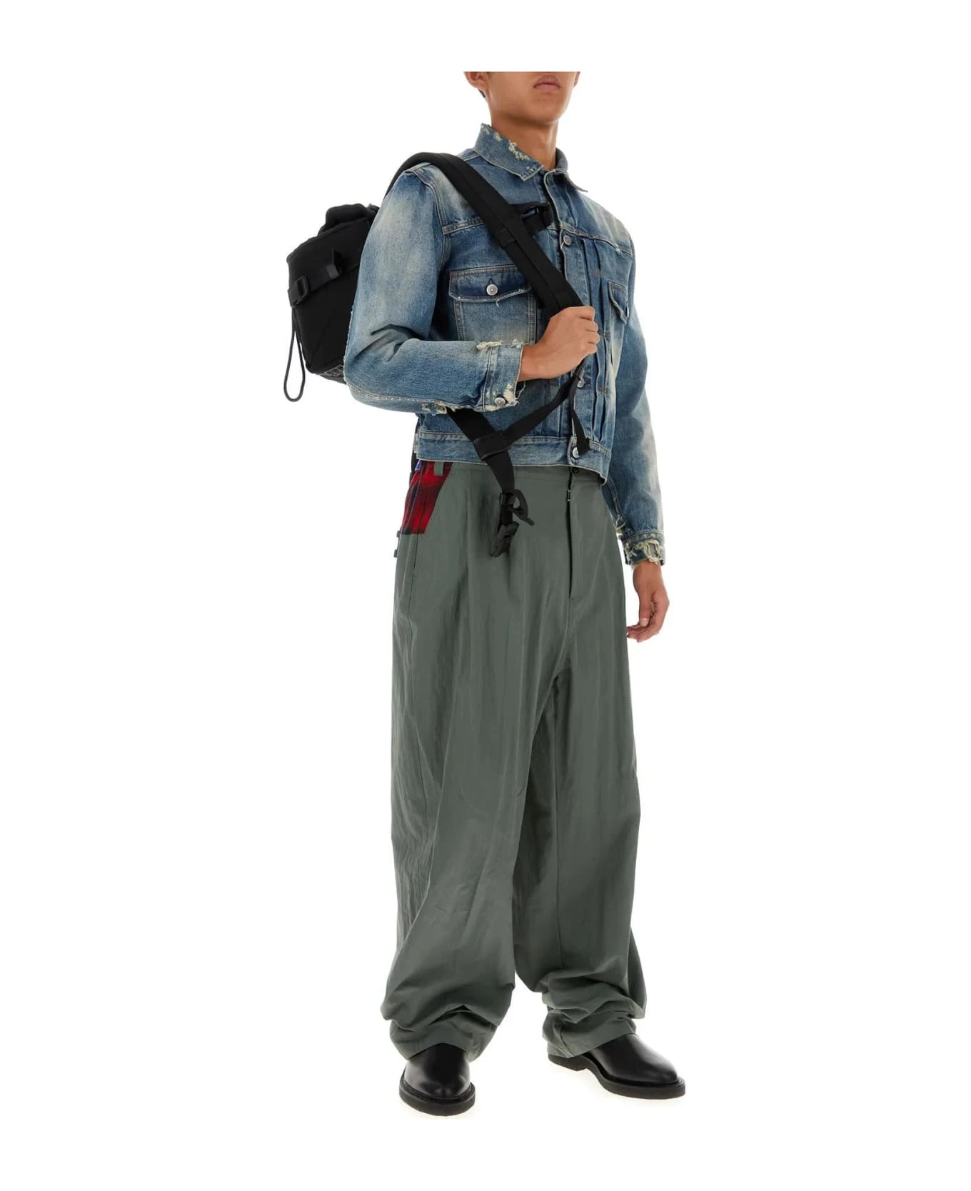 Wide-leg pant realized in cotton blend with tartan motif wool insert enriched by iconic stitchings at the back.