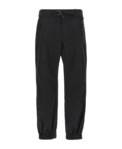 Nylon pants with tone-on-tone logo print, zip and button closure, elastic waistband, adjustable strap, pockets, elastic ankle cuffs.