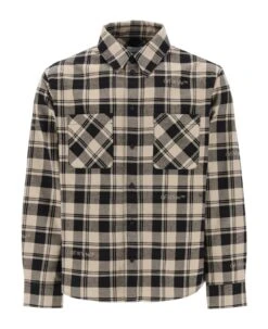 Off White shirt crafted in pure cotton flannel with logoed check motif all-over. It features classic collar, front button closure, chest patch pockets and curved hem. Regular fit with boxy cut. The model is 187 cm tall and wears size L.