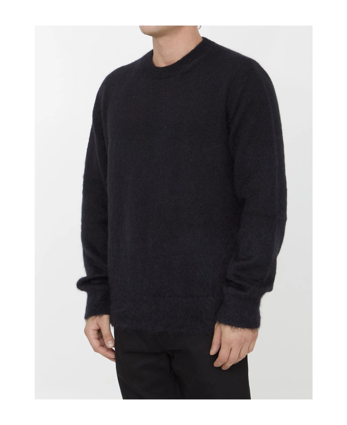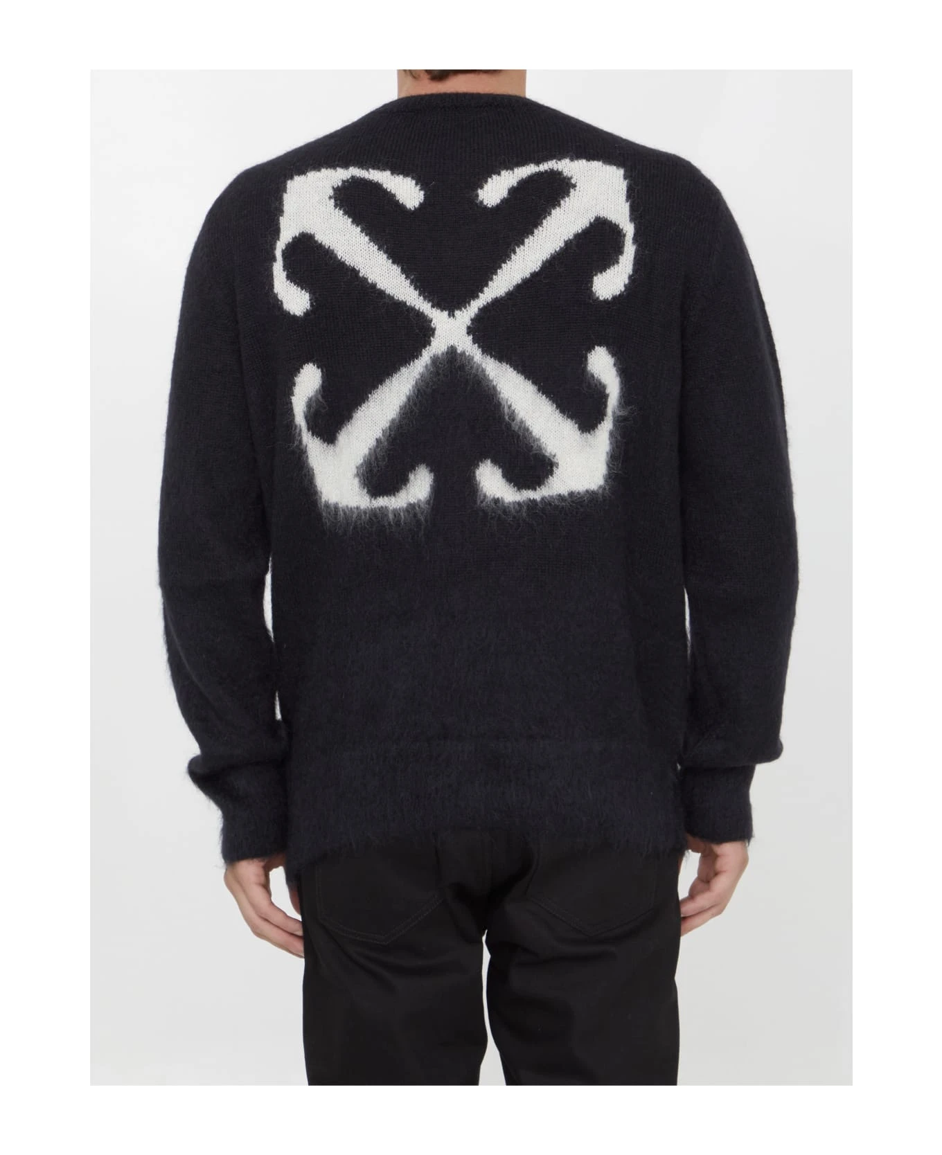 Long-sleeved crewneck jumper in black mohair blend with Arrows motif on the back. Regular fit.