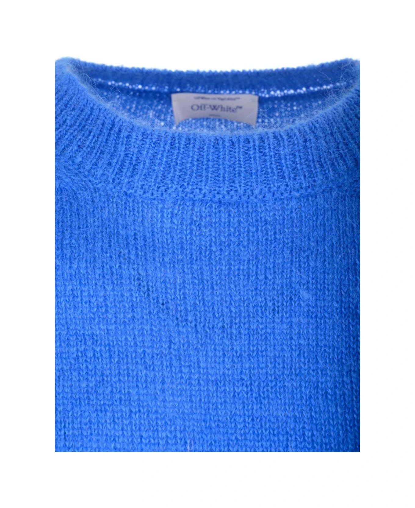 Light blue mohair knit sweater from Off-White, with standard fit and Arrow anchor logo on the back.