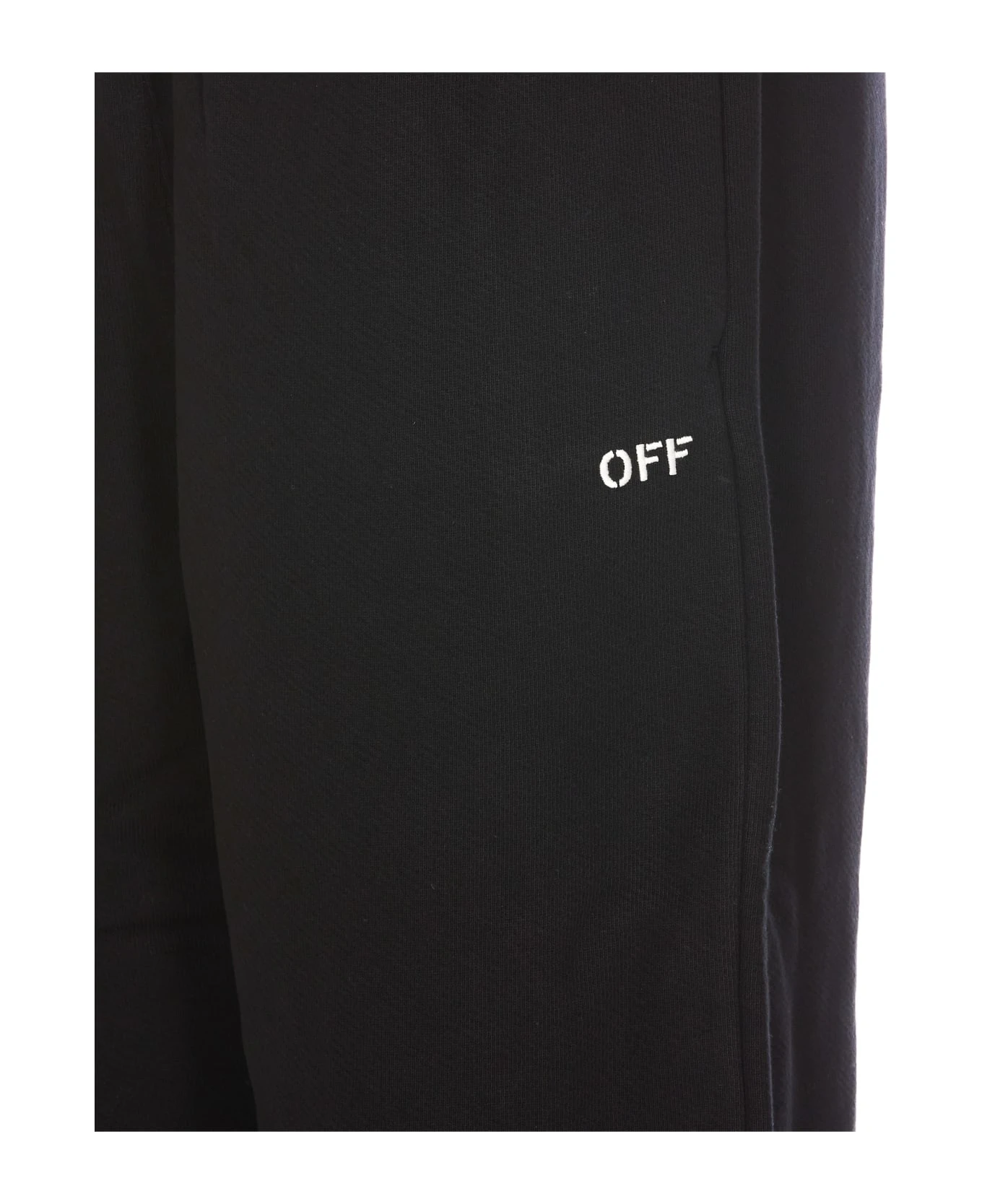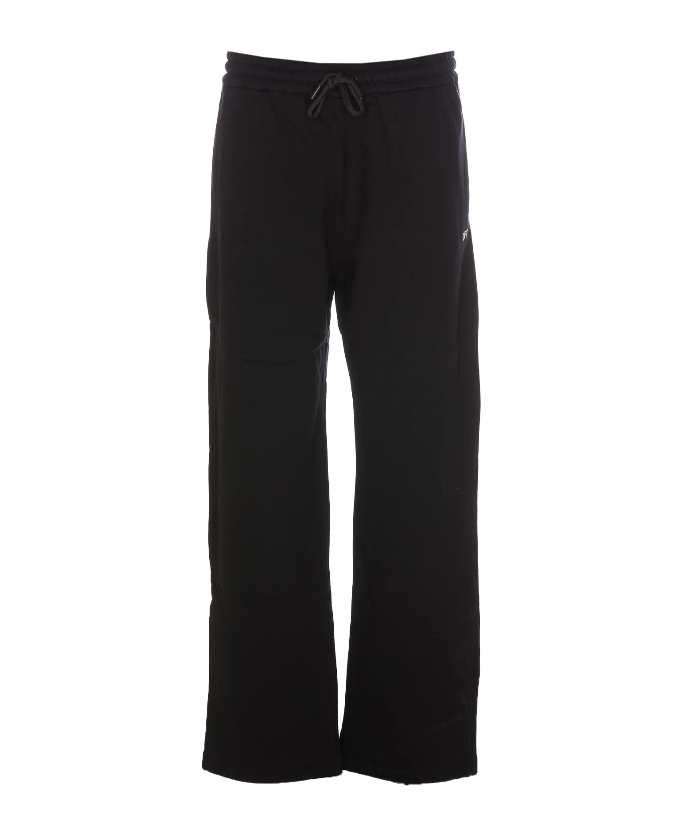 Off White black track pants, coulisse closure, elasticized on waist, lateral pockets, embroidered logo on the front, lateral pcokets
