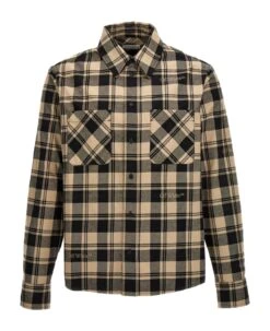 Check Flannel’ cotton overshirt with check print with logo embroidery, front pocket, button closure, long cuffed sleeves.