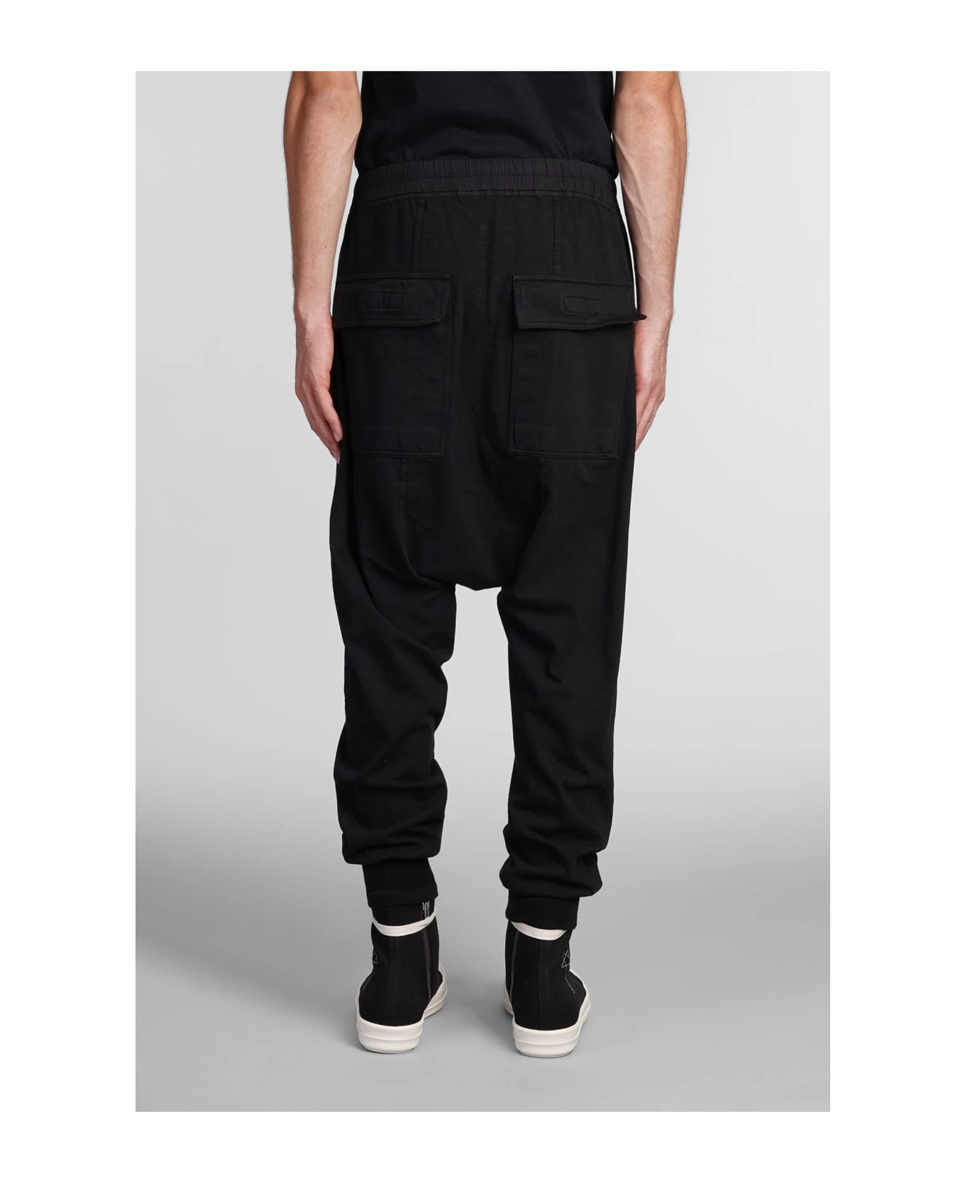 Prisoner drawstring Pants in black cotton, elastic waist, Drawstring laces, pockets, elastic hem, 97% Cottone 3% Spandex, Model is 180 cm and wear a size S