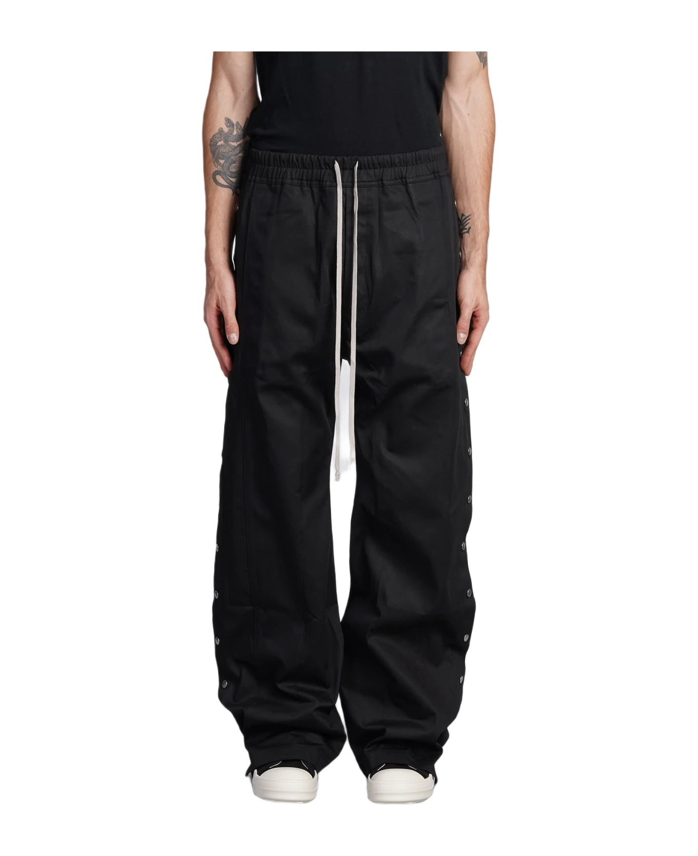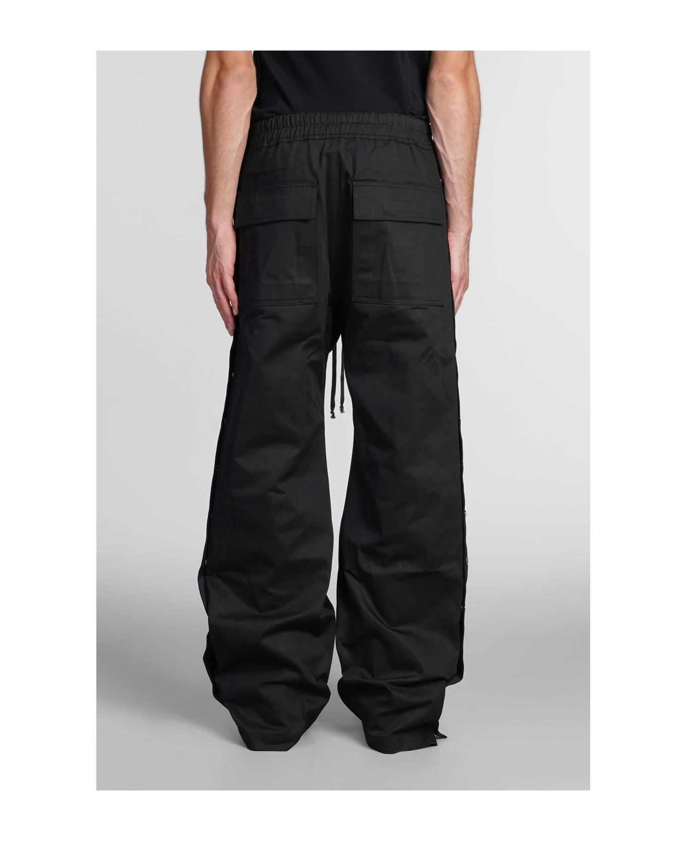 Pusher pants Pants in black cotton, elastic waist, elastic waistband, side buttons detail, silver hardware, 100% cotton, Model is 183 cm and wears 48 , Made in Italy