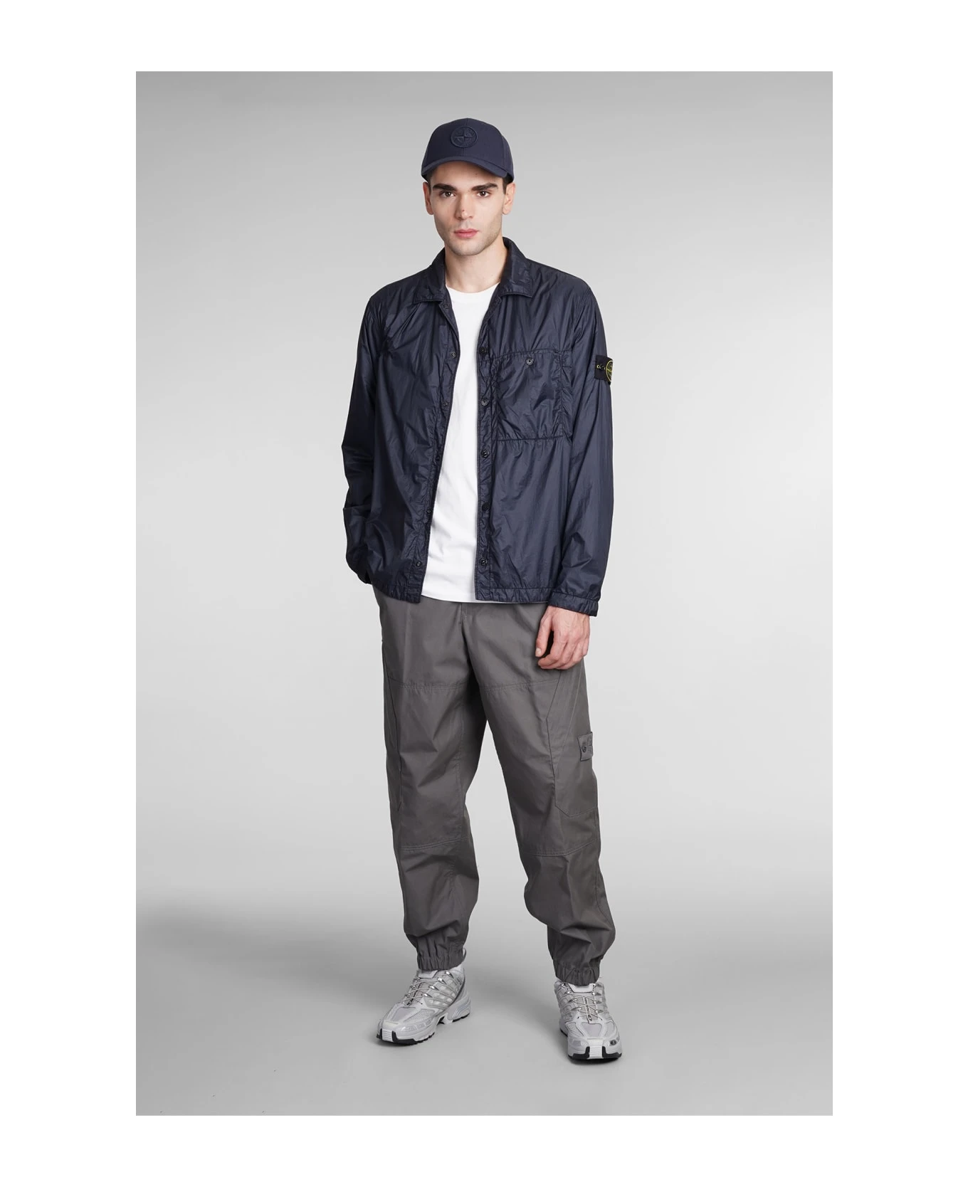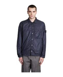 Casual jacket in blue polyamide, 100% polyamide, zip clousure, collar, Model is 183 cm and wears size L, Made in Vietnam, patch logo sleeves, elasticized cuff and bottom, breast pocket