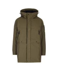 Padded parka coat from Stone Island in green nylon featuring signature Compass motif, drawstring hood, high neck, concealed front zip fastening and two zip-fastening chest pockets