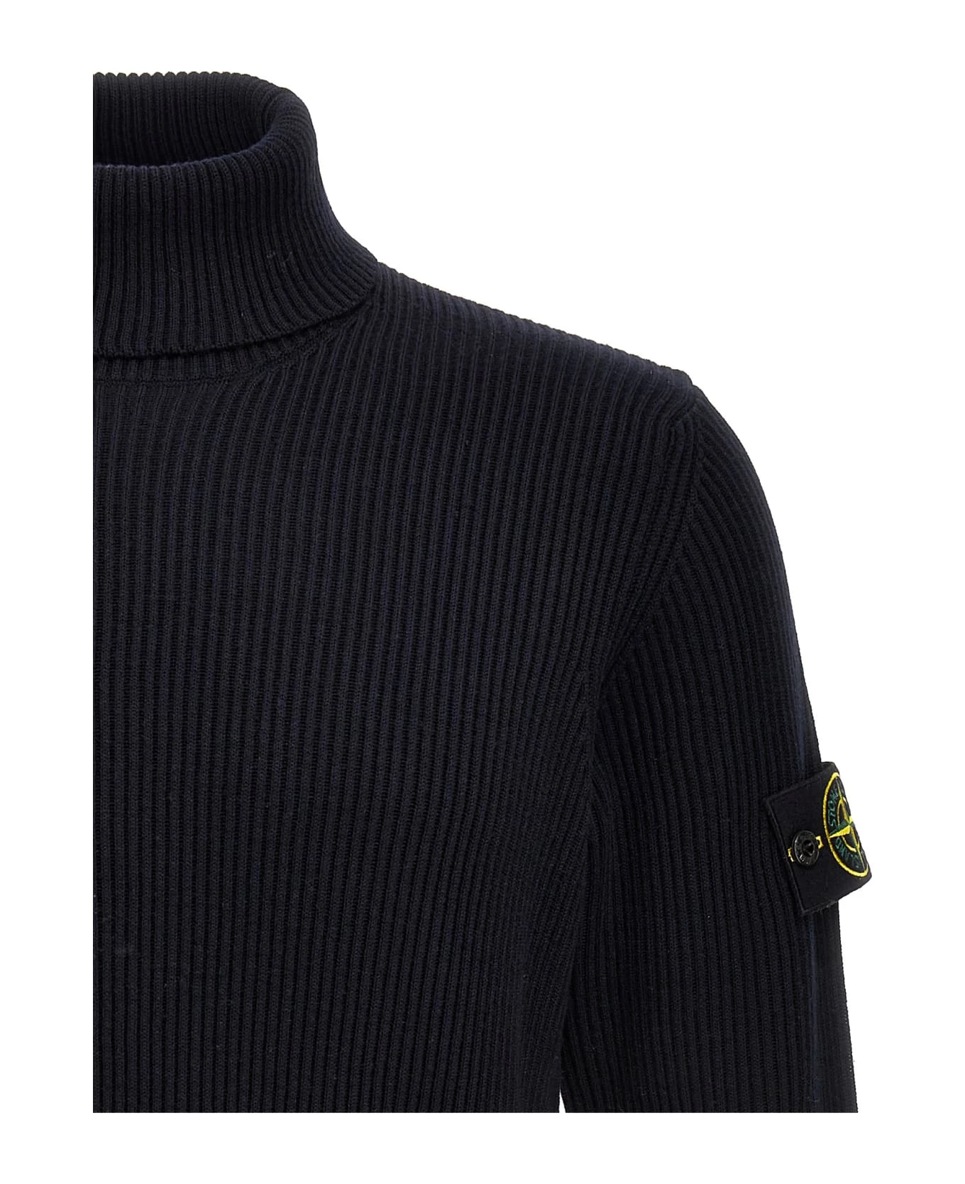 Ribbed wool sweater with turtleneck style with logo badge on the sleeve.
