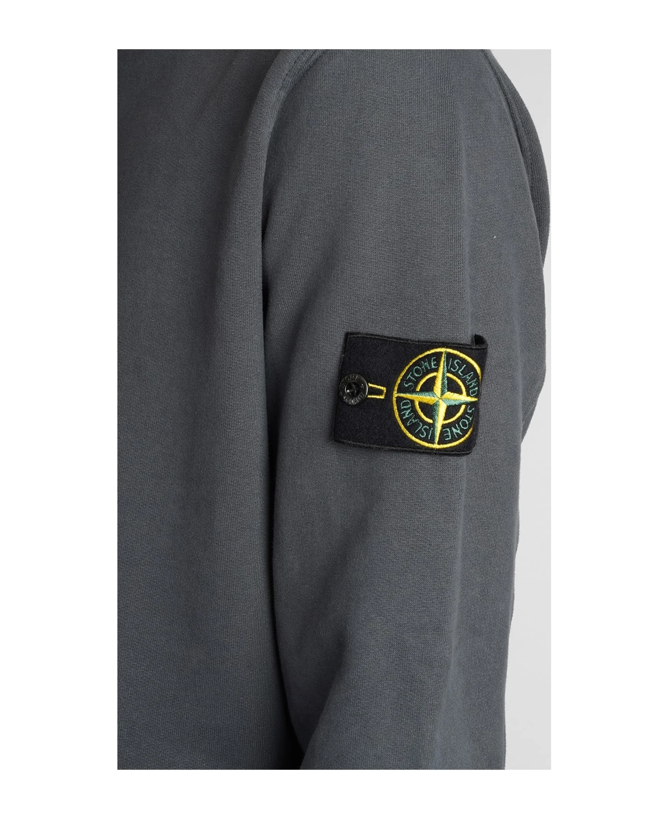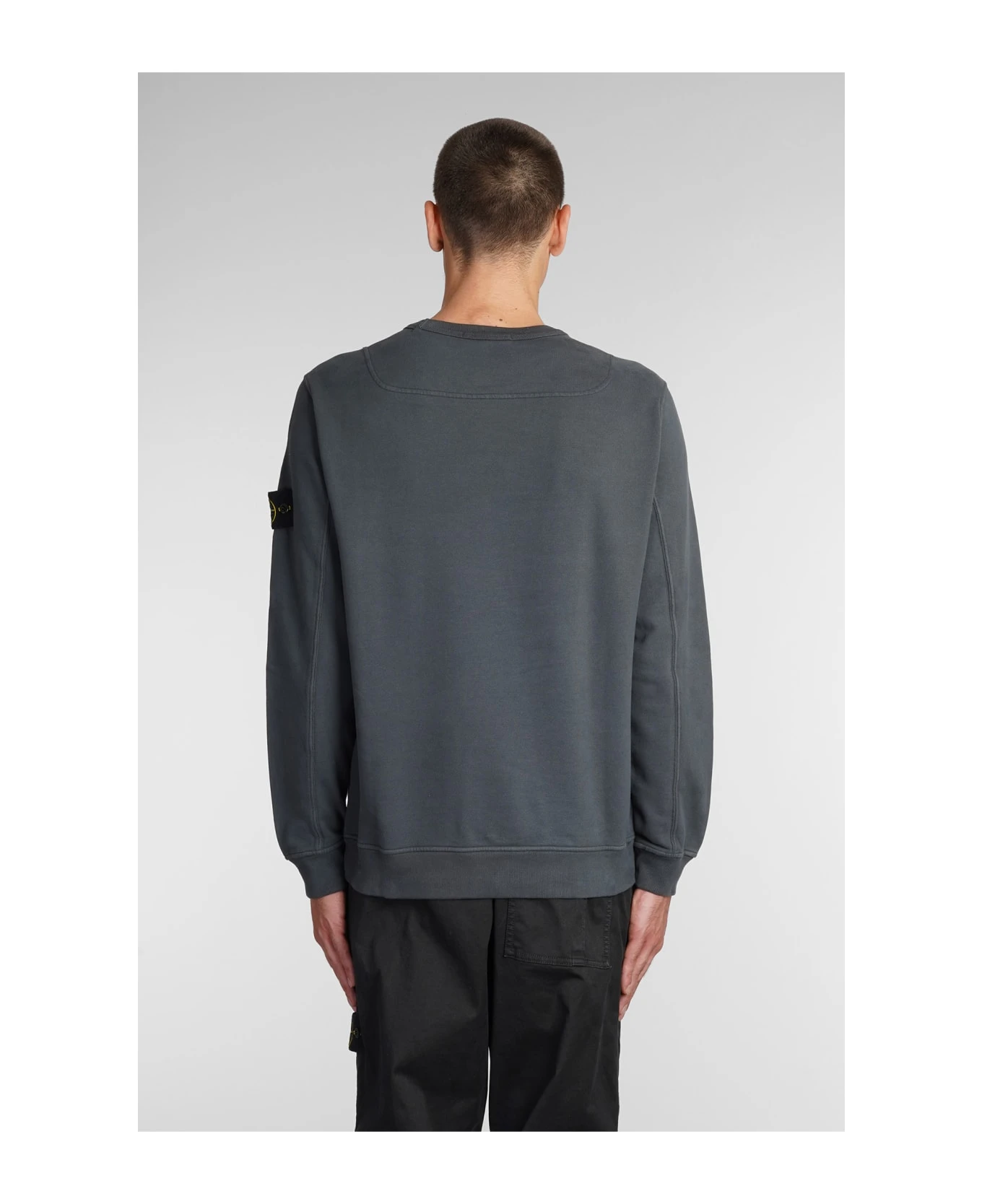 Sweatshirt in grey Suede and fabric, round neck, long sleeves, elasticized cuff and bottom, patch logo sleeves, 100% cotton, Model is 183 cm and wears size L, Made in Turkey