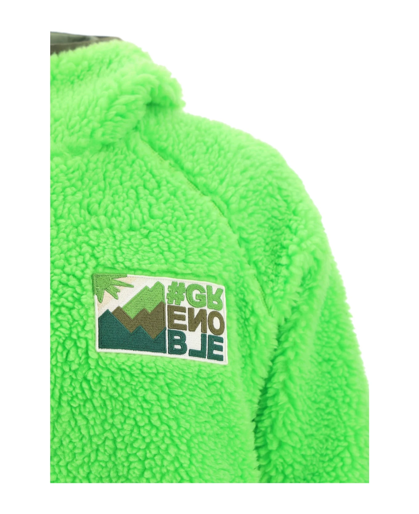 Taddy hoodie by moncler grenoble, front zipper closure, monochrome double-layered bouclé effect design, two side slit pockets, hooded design with high collar, patch with iconic brand monogram applied on the front, regular fit.