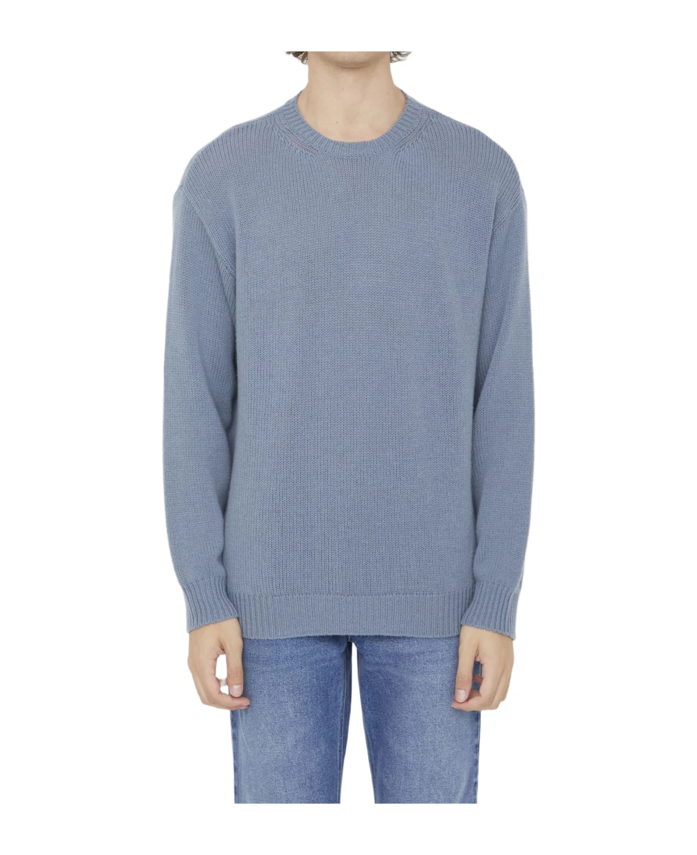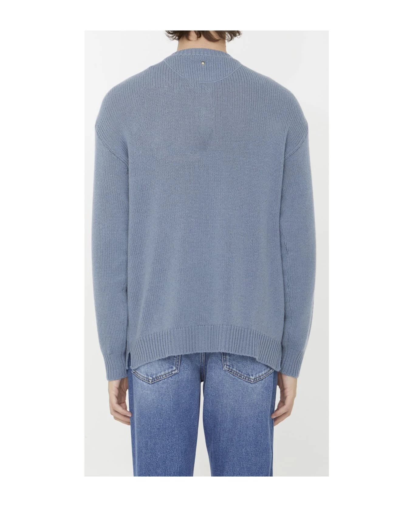 Long-sleeved crewneck sweater in light-blue cashmere. Stud detail at the back of the neck. Ribbed neck, cuffs and hem.